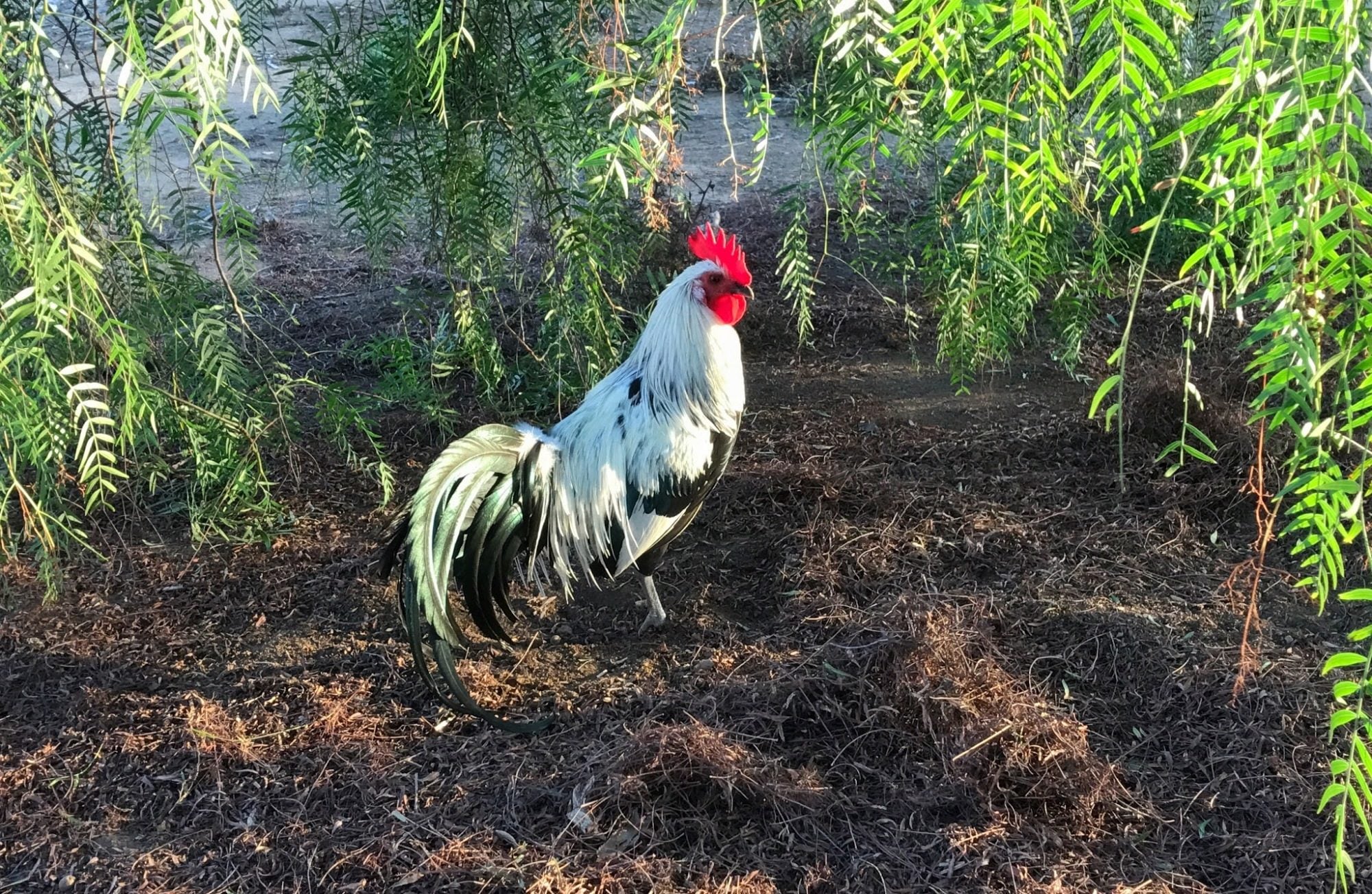 I don't know if these worked or not but I have two pictures of my silver Phoenix Joe who had just lost this summer but I kept his son Dave he's the more cream colored one. He's a cross between a Phoenix and a Sussex very wonderful birds