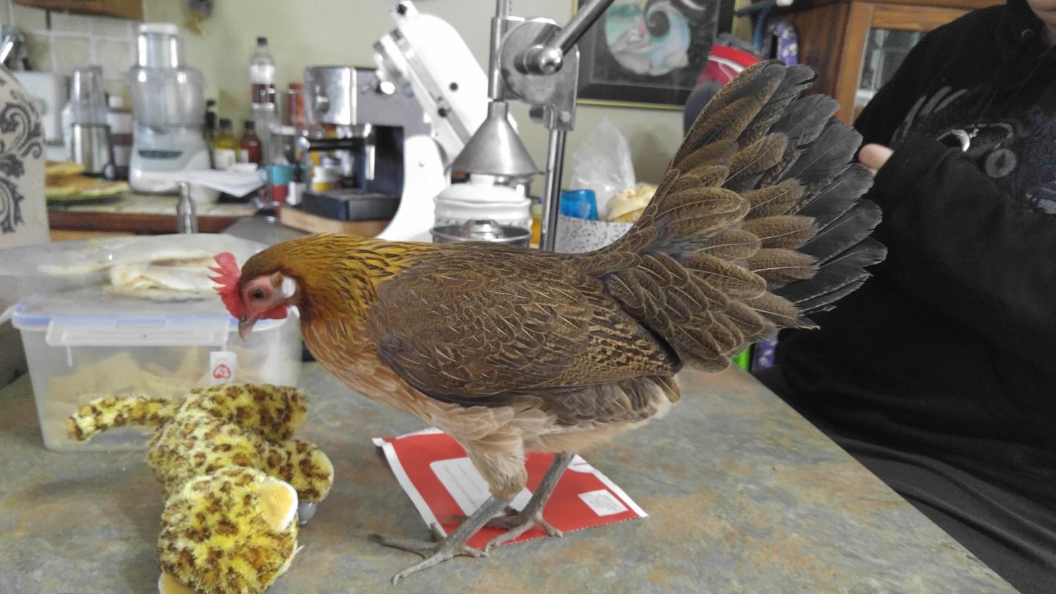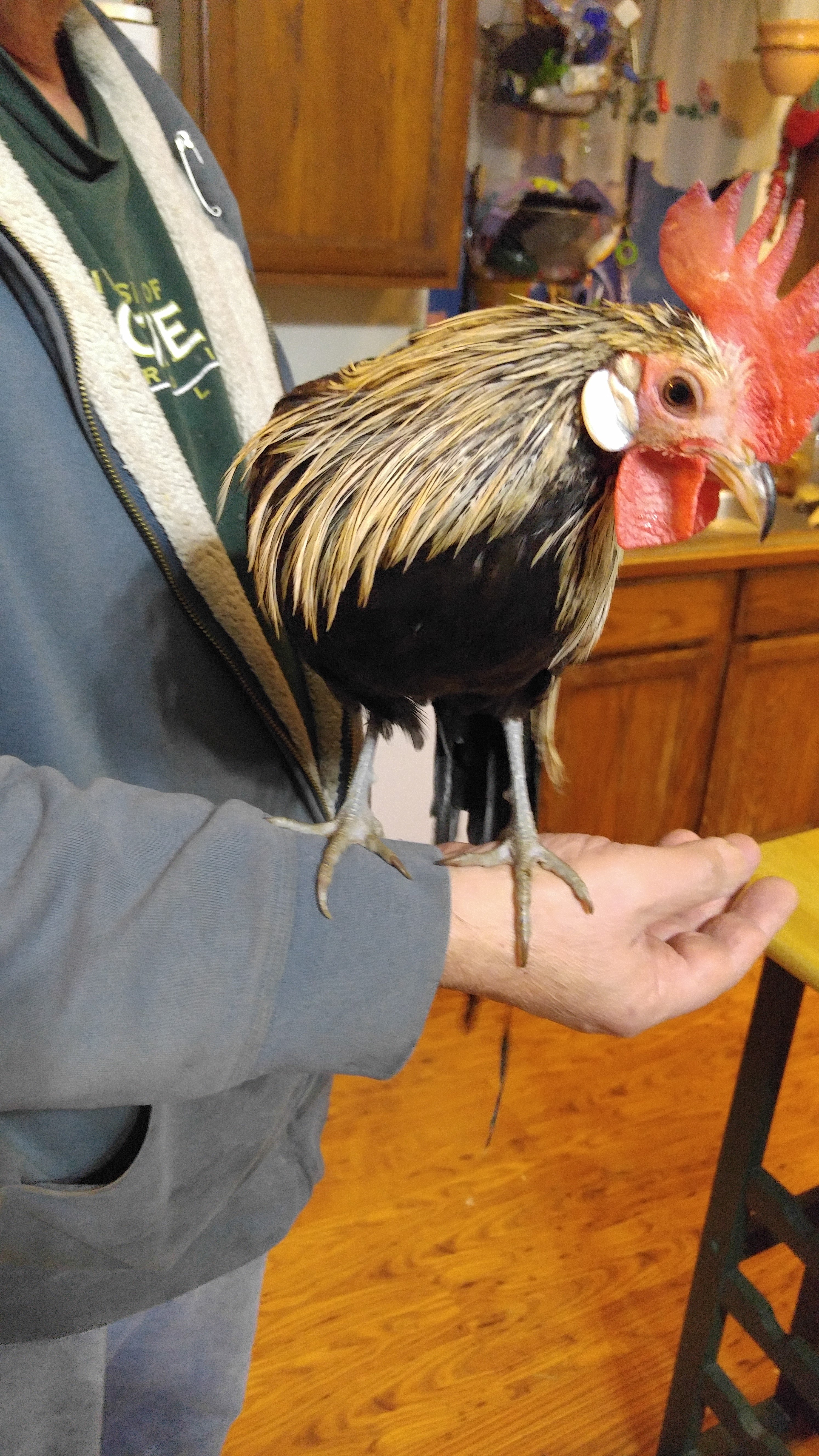 Thanks! We call him Derpydoo. He's madly in love with a giant fluffy salmon faverolle. They wander the property together like a couple of highschoolers on Prom night - the girl in a peach tulle dress and the boy in a shiny tux. Too funny. So glad we kept him!