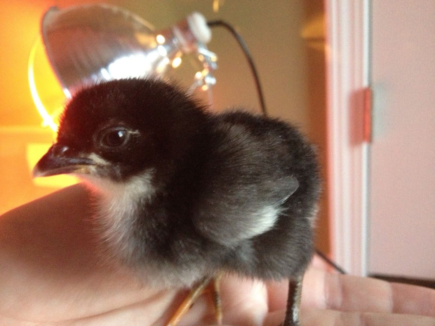 I am new to Orps myself so I don't know a lot. Is there a chance this chick is a Lavender split? I can't tell much from the color but looks black to me but some blues are very dark. If he/she is a lavender split then it will carry the lavender gene no matter what color it turns out to be (I think). Maybe some of the more experienced Orp people can lend more insight and correct me if I am wrong.