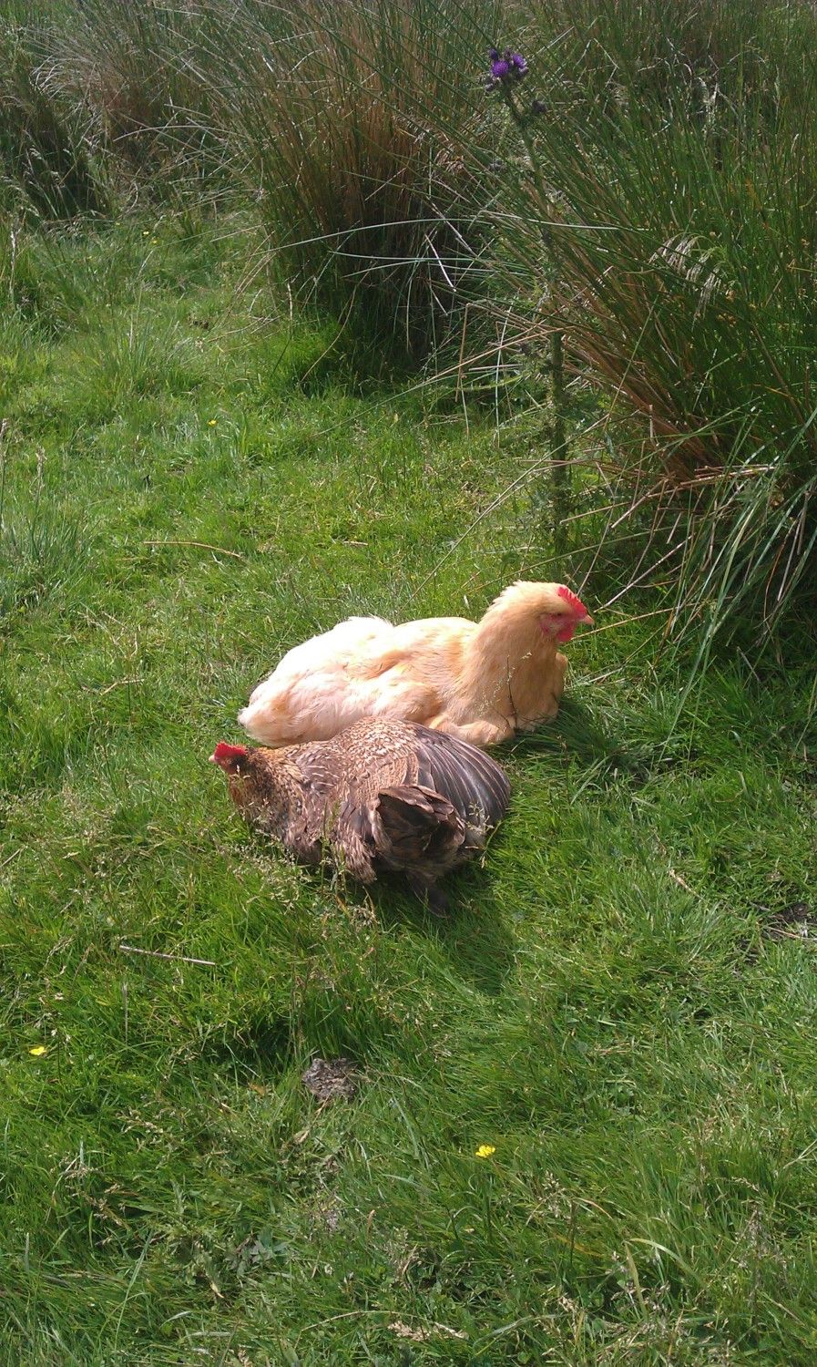 Bella's mother has got to be the most useless hen on eggs that I have ever had! Her first time was in June 2012. She sat on 10, 2 hatched, she got off the nest leaving the other 5 with fully grown chicks in to freeze. Second time was in April this year, I give her 7 eggs and if they fell out from under her, she didn't bother putting them back in. 1 egg wasn't fertile, 5 died on the first week (in the eggs obvcourse) and she left one out of her on day 20 and it died and was the only one that made it to the end! So I had to buy her day olds. She is done with them and back on the eggs, so I got her and her sister some Light Sussex eggs, 2 each. She has a huge nest and has managed to break one of them and she only had 2 eggs! The other was filthy, so I give it to her sister and swapped a clean one to her. If she screws this one up she isn't getting anymore. She's a great mother, just does my head in when she is on the eggs!