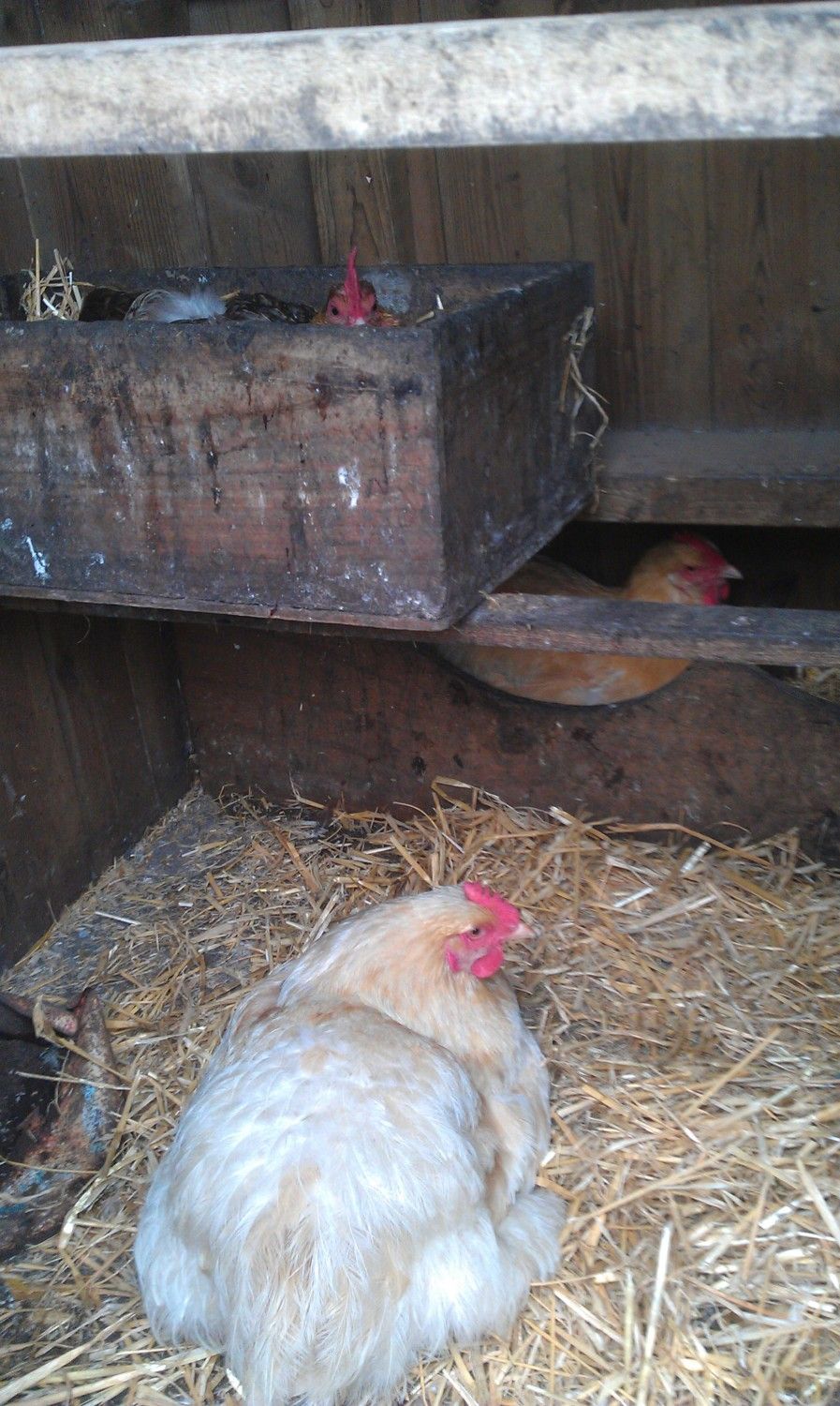 Daisy and the baby have moves themselves into the main shed with everyone else! I had to shove my hand under Daisy to get the eggs which where nice and warm! One was Bella's mothers! Bella's had some blood on it today, so I hope thats not a sign that she is getting a prolapse.