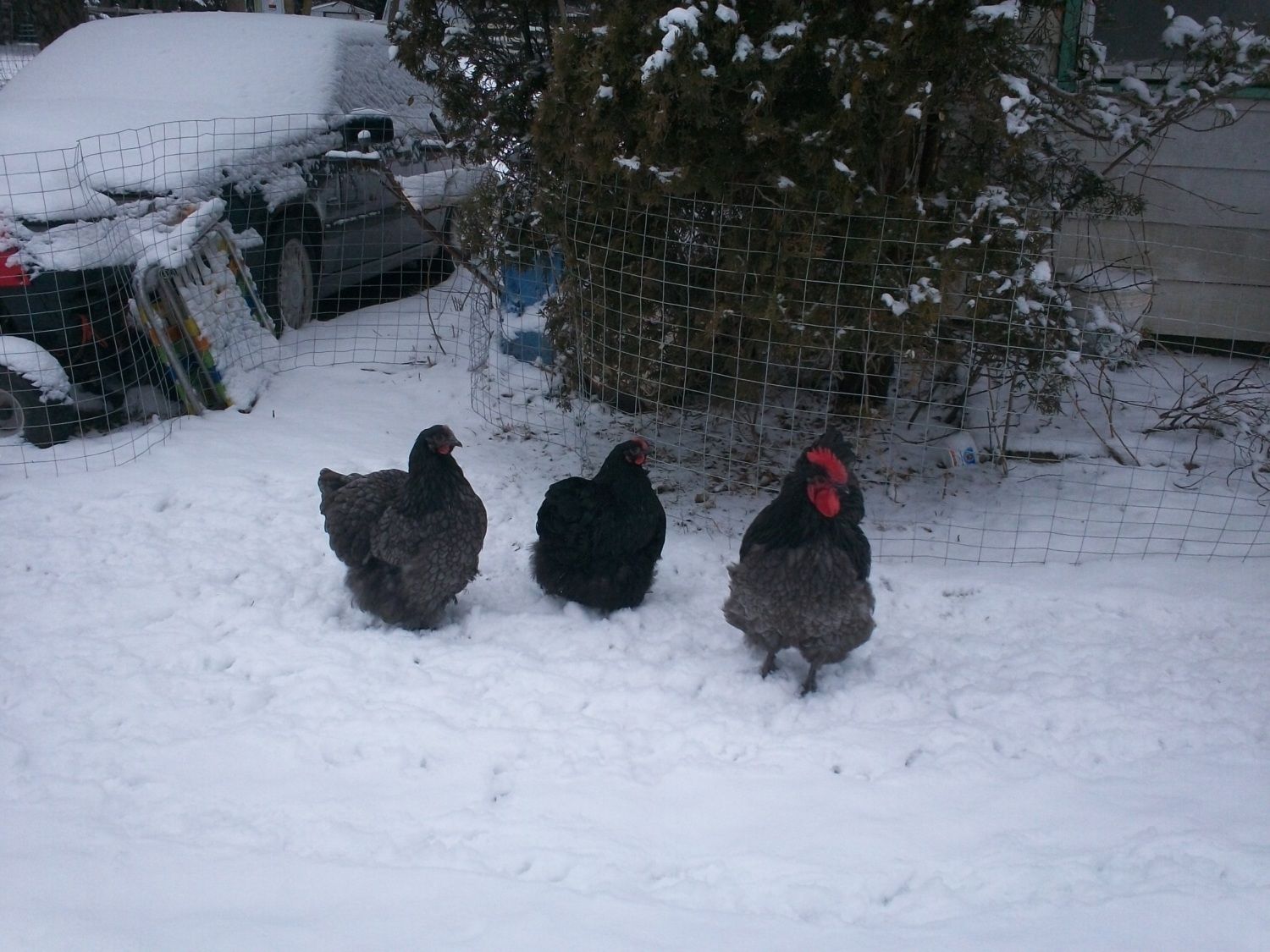 Oh I hadn't thought about the snow yet! This will be my 1st winter, & my chicken's. Do they wander around pecking the ground all day when it snows too?? Lol