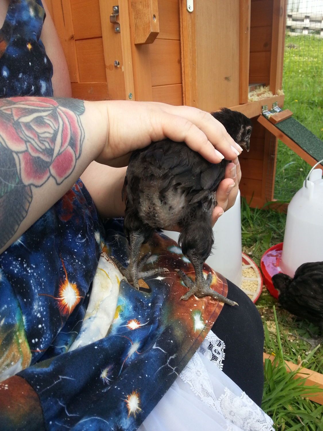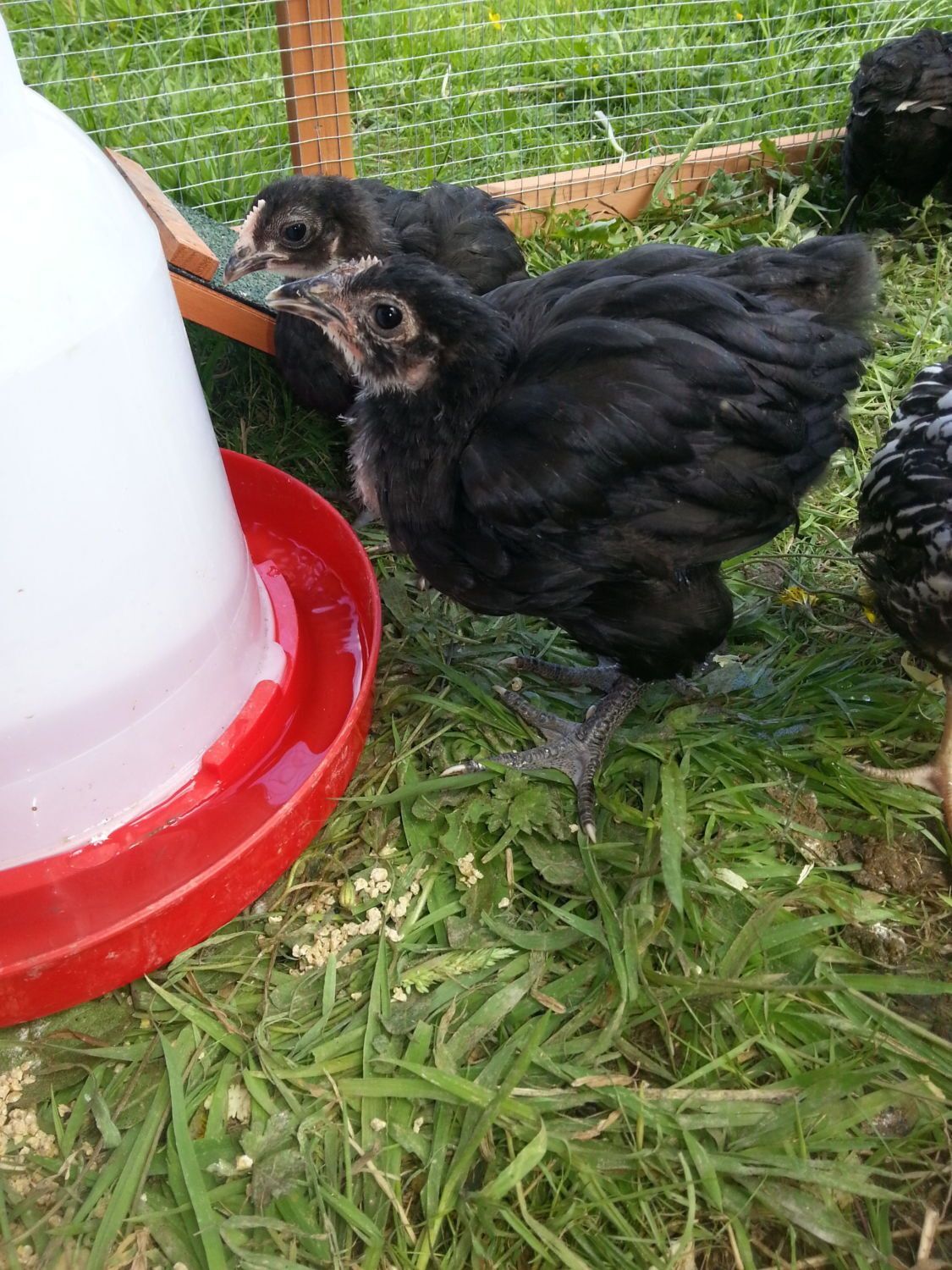 Can any of you remember Coco the chick that got caught in a rat trap? She was just about strangled to death when she was about 4 weeks old but she survived! She's the bottom hen now though but she still has her mam looking after her so she just hides behind her and sneaks into the top hen feeder next to her!