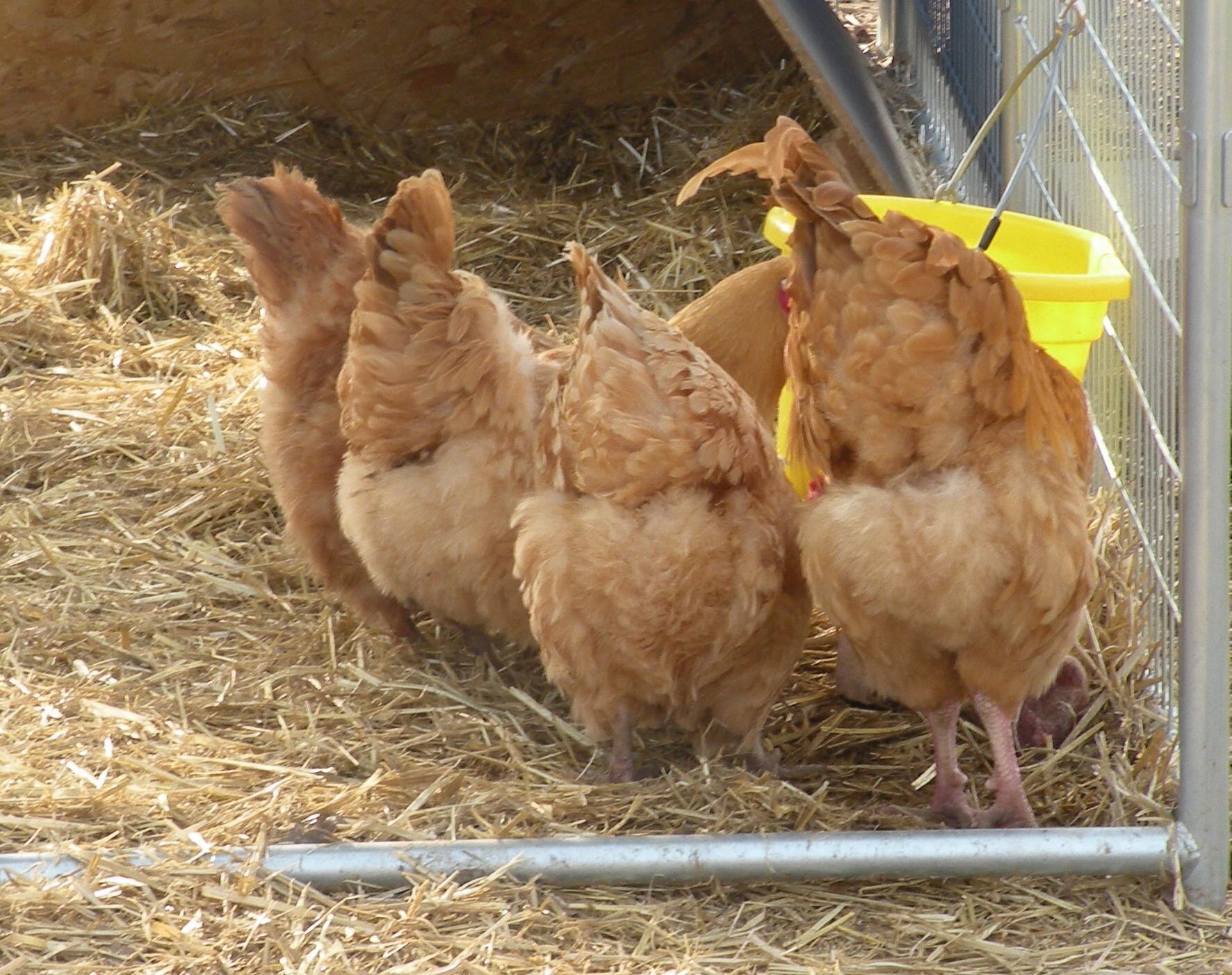 The RIR didn't like one of the Buffs, so was picking fights with her. CoCo was such a gentleman! He just sqawked and walked between them. It didn't take too long for Red to get the message.