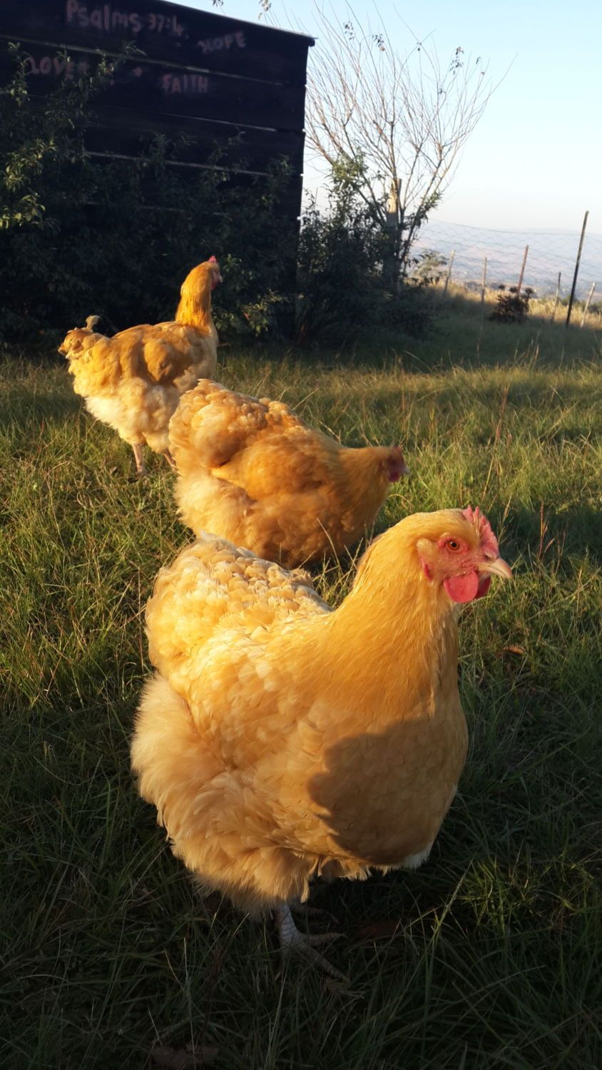 I'll join in, and share some photos of my Buff Orpingtons! I was drawn to the breed because of it's sweet nature, golden colored feathers, and because I just HAD to have another breed in my flock. At that time I already had a few australorps, amber stars, and brahmas. So I picked up a trio from a breeder near us. Then 4 more laying hens. They are so sweet, I love them already!