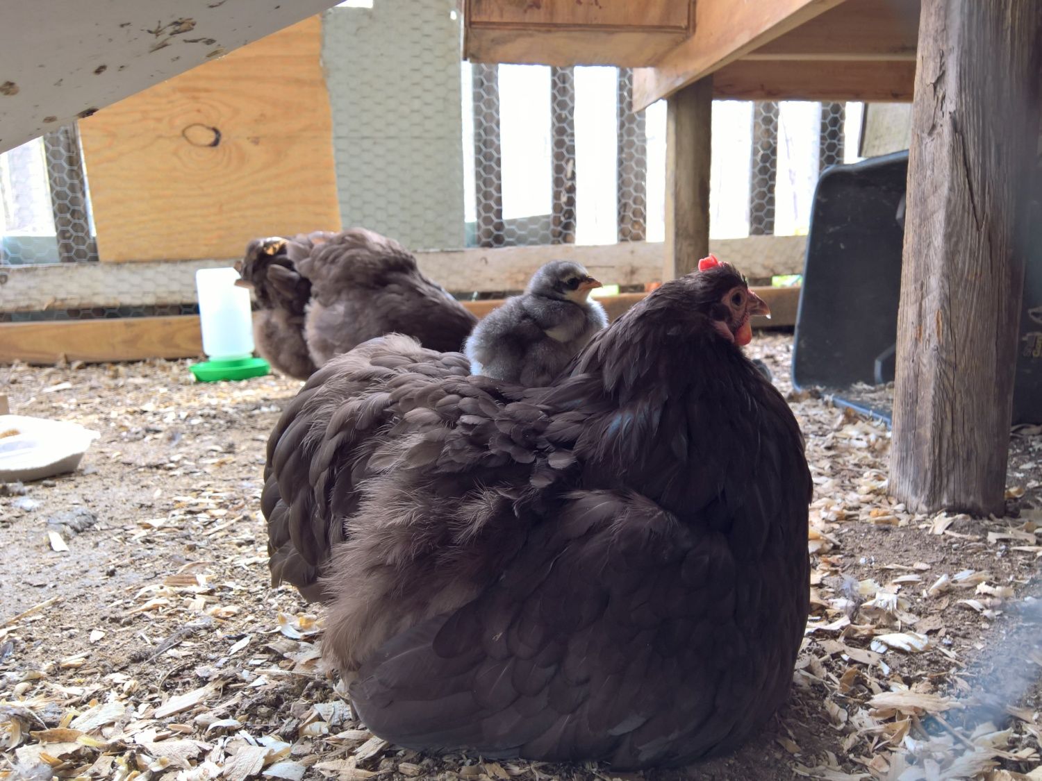 Broody Mocha hatched most of the chicks, but she kept accepting eggs from her sisters for a few days, until I separated them, so her hatch got staggered. I ended up hatching the last 3 in the incubator, but she accepted the chicks back. She's such a good momma.