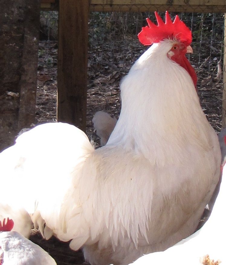 That white hen may be hiding cuckoo, the plumage looks like it. There looks like a super light dusting on the outer edge of her feathers..unless she is molting..or its the lighting..
