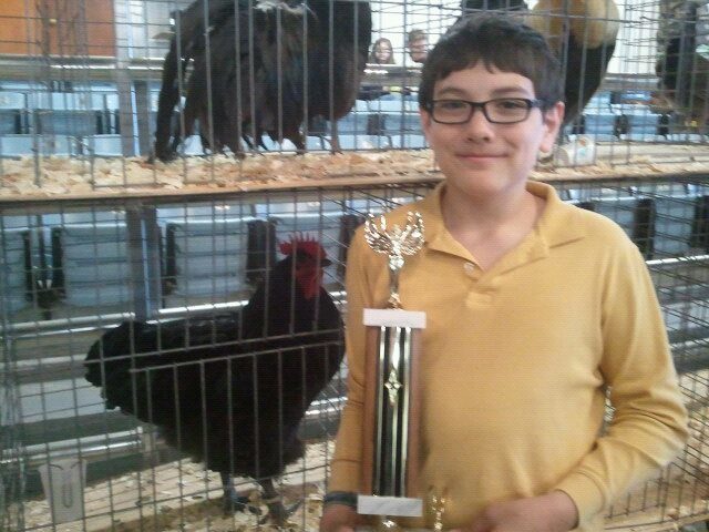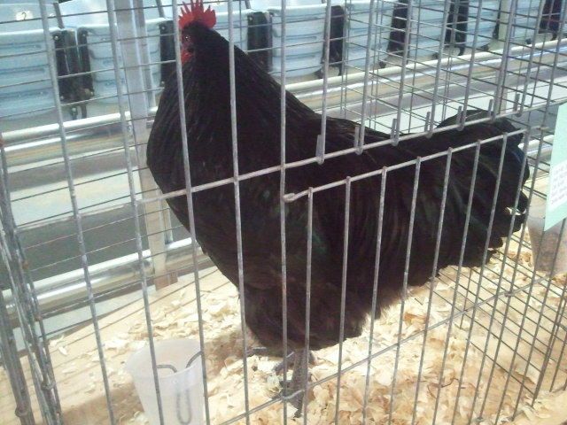 My son won Best Jr LF!!! We got a lot of compliments on how big the cockerel was for his age. I think those pics I posted earlier in this thread really don't do him justice. He's a really big boy. There were a few Black Orp roosters in the main show, and he was as big as those, just not quite as filled out, especially in the tail, and in the chest. He was just as wide, though, and not any leggier than them. I think he is just not photogenic.