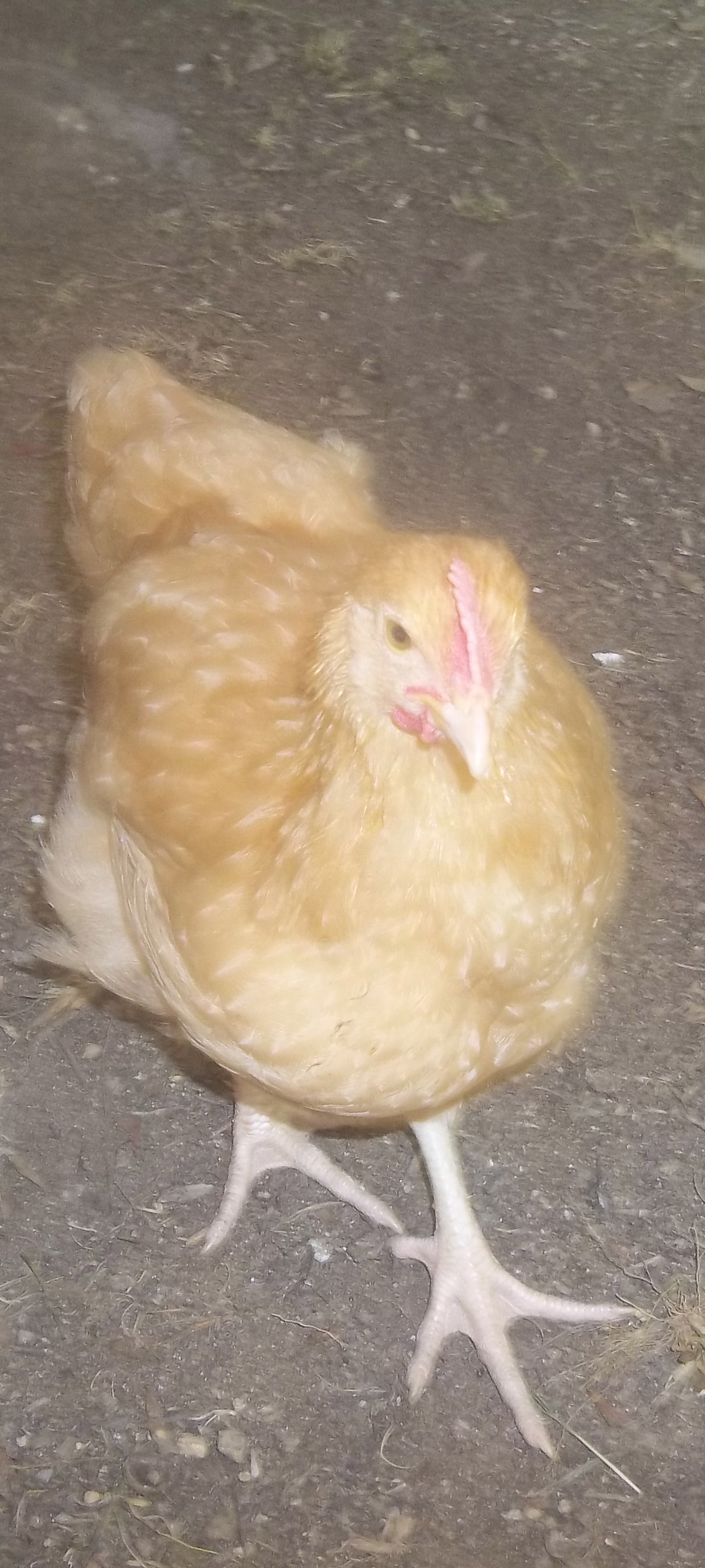 You and I are used to looking at scapulas, ie; shoulders, showing lots of rein , and horse in front of you. However a bird walks on it's HIND legs , so we are talking short FEMUR here. Which ever,being short, it cants the bird forward. I've found over the years that I put a visual girth on most critters. It works for horses, dogs,cats, goats, sheep, and poultry because it shows the balance point. You wanna ride that hen? I don't think so. She would pound your teeth out. Even canted forward, with that short neck (horrors) how does she eat comfortably??? I can visualize her rolling forward head over heels about the yard like a parlor roller pigeon. Function follows form, and vice versa. A natural balance is a beautiful thing, but "dealer's bait " pretties fool a lot of people, and she IS pretty.