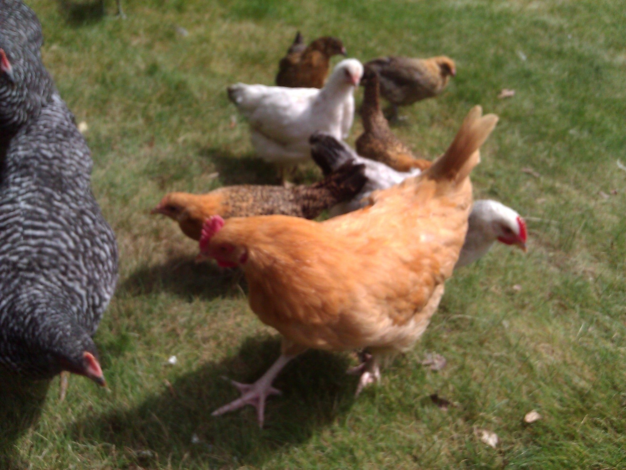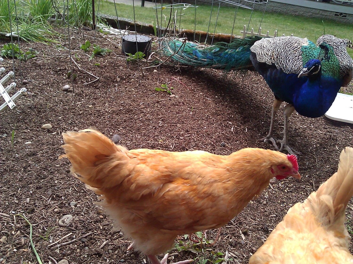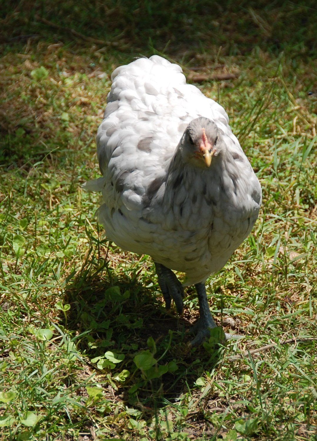 Here are my two......boys?? They are 14 weeks old. Fred got his comb & waddle first, and had huge shanks, but Fiona just got bigger than him last week, her comb isn't as red as his though. How much longer until they crow? I haven't caught either of them trying yet. They are inbetween the peep and crow stage - kinda like a teenager. Fred is on the left, Fiona (Frank?) on the right.