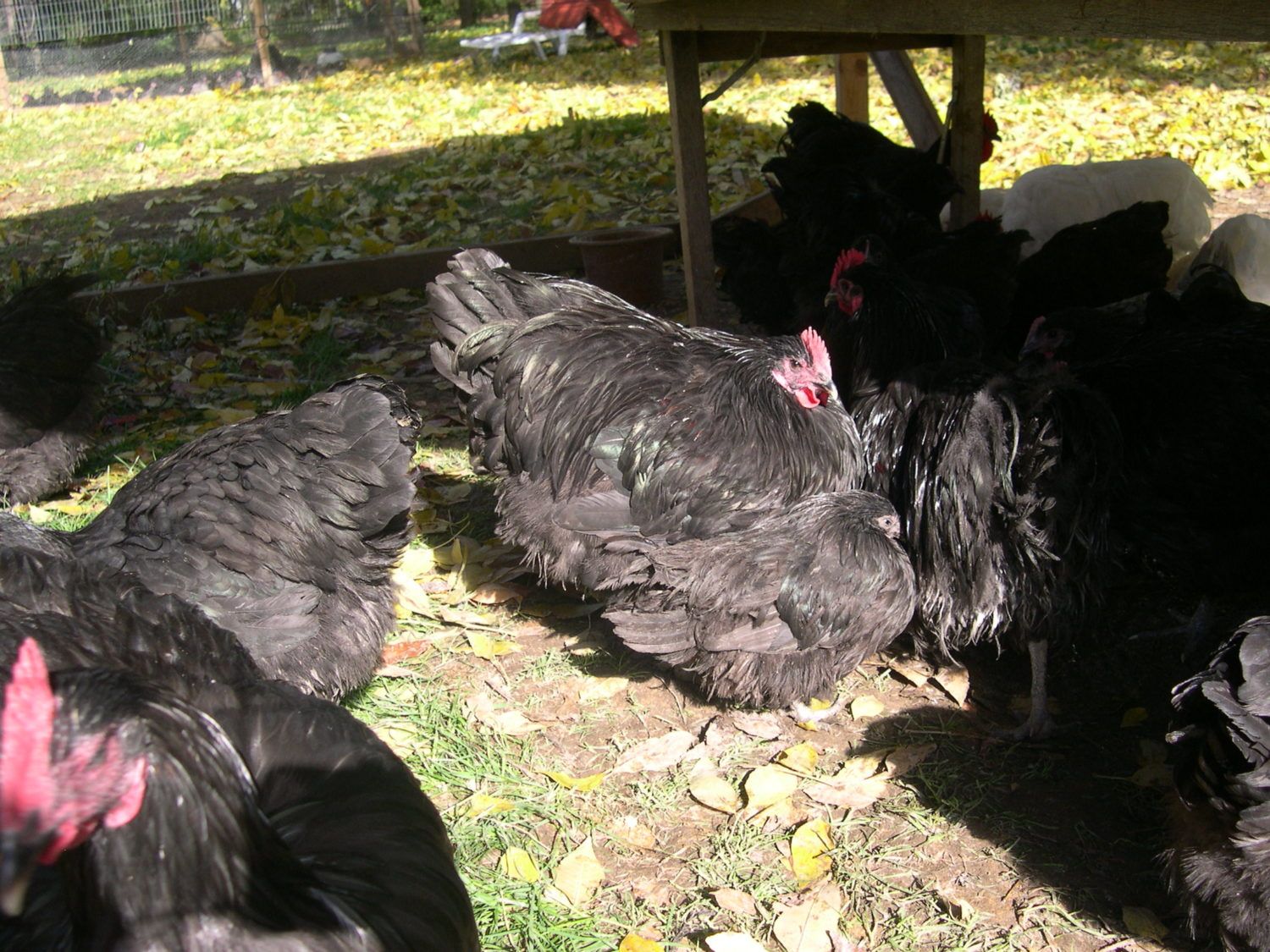 i had just douced mine with fall lice powder. those things just creep me out..guess you can see it all over him..better safe than sorry thou...It is a small picture and if it is not keeping up it is a reason to cull, but sometimes they have that spurt of growth. It is too hard to see what is wrong with the back.