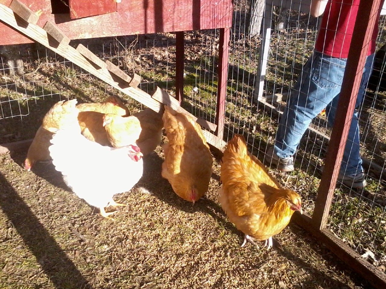 Junior is getting on my nerves! Yesterday I could not open the coop without him stepping out to say hello! His grand-sire, Golden Gentleman, was never that friendly, and he was gentle! Must have been that South Carolina water. His grandmother is friendly, but knows to stay out of the way. This bird is just a huge pest. And when I say HUGE, I mean H...U...G...E...!!!!