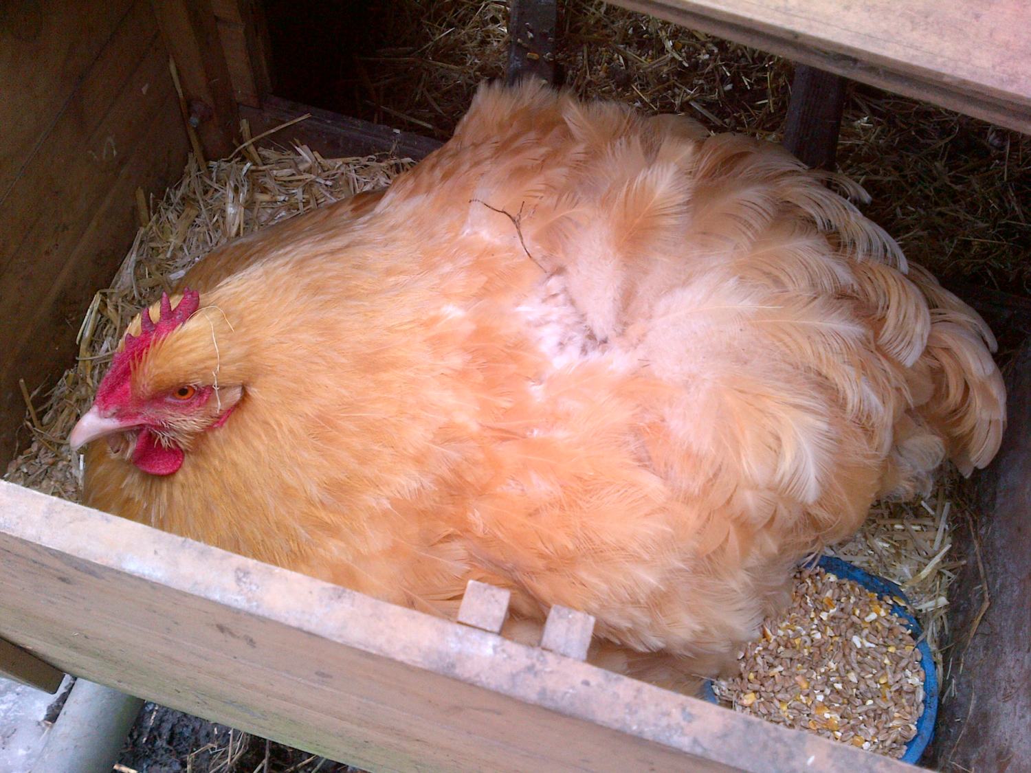 And here is Bella's mother, she is sitting on 7 eggs, 1 or 2 of which are her own and 2 are Bella's