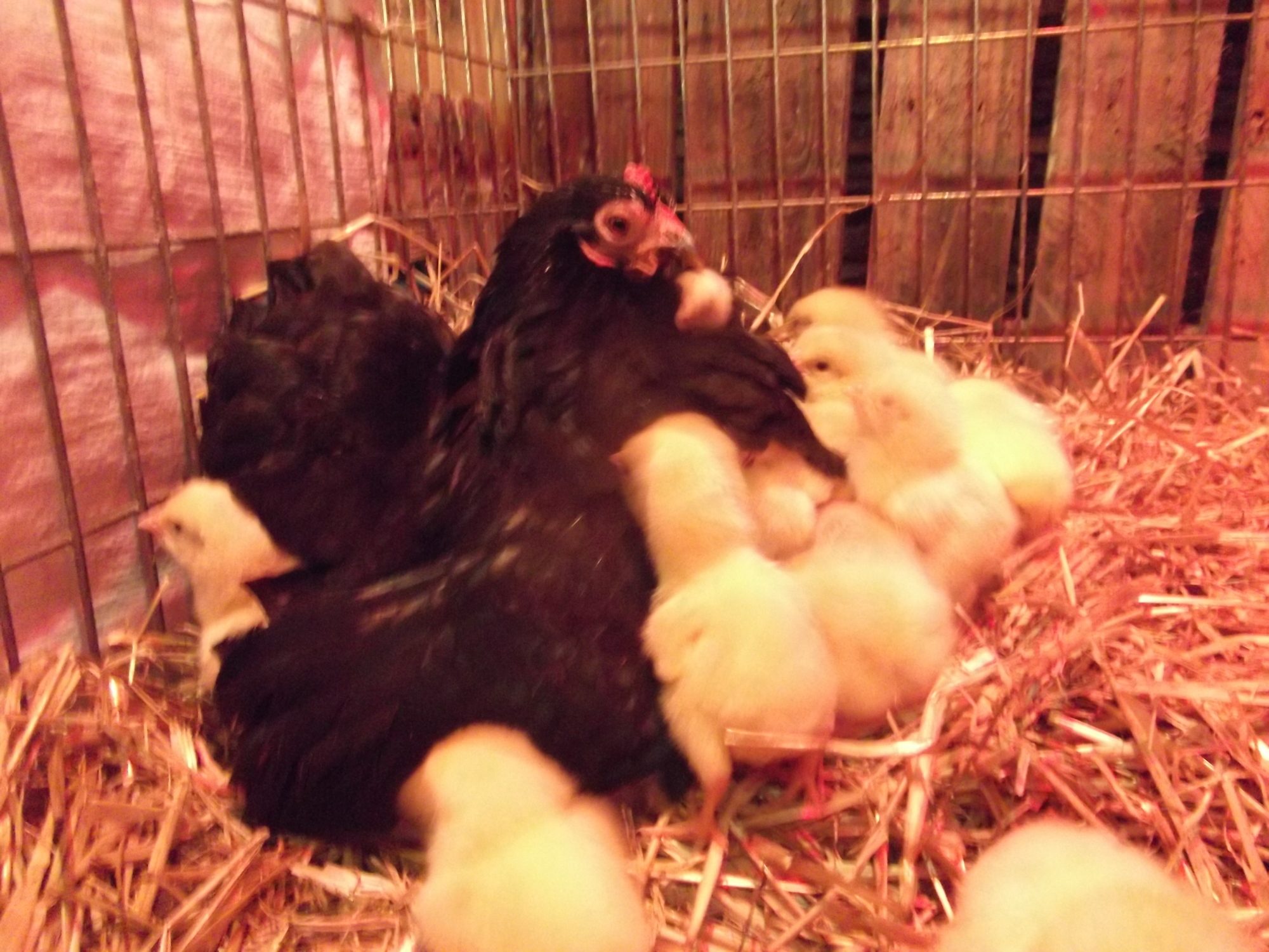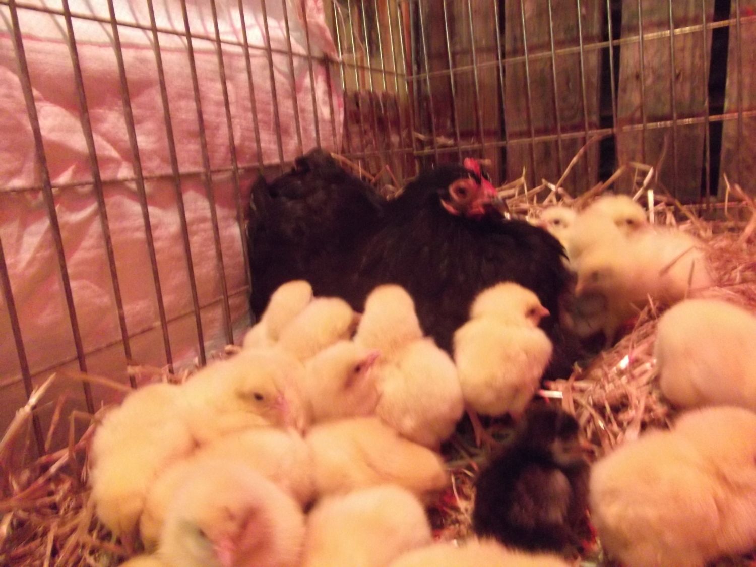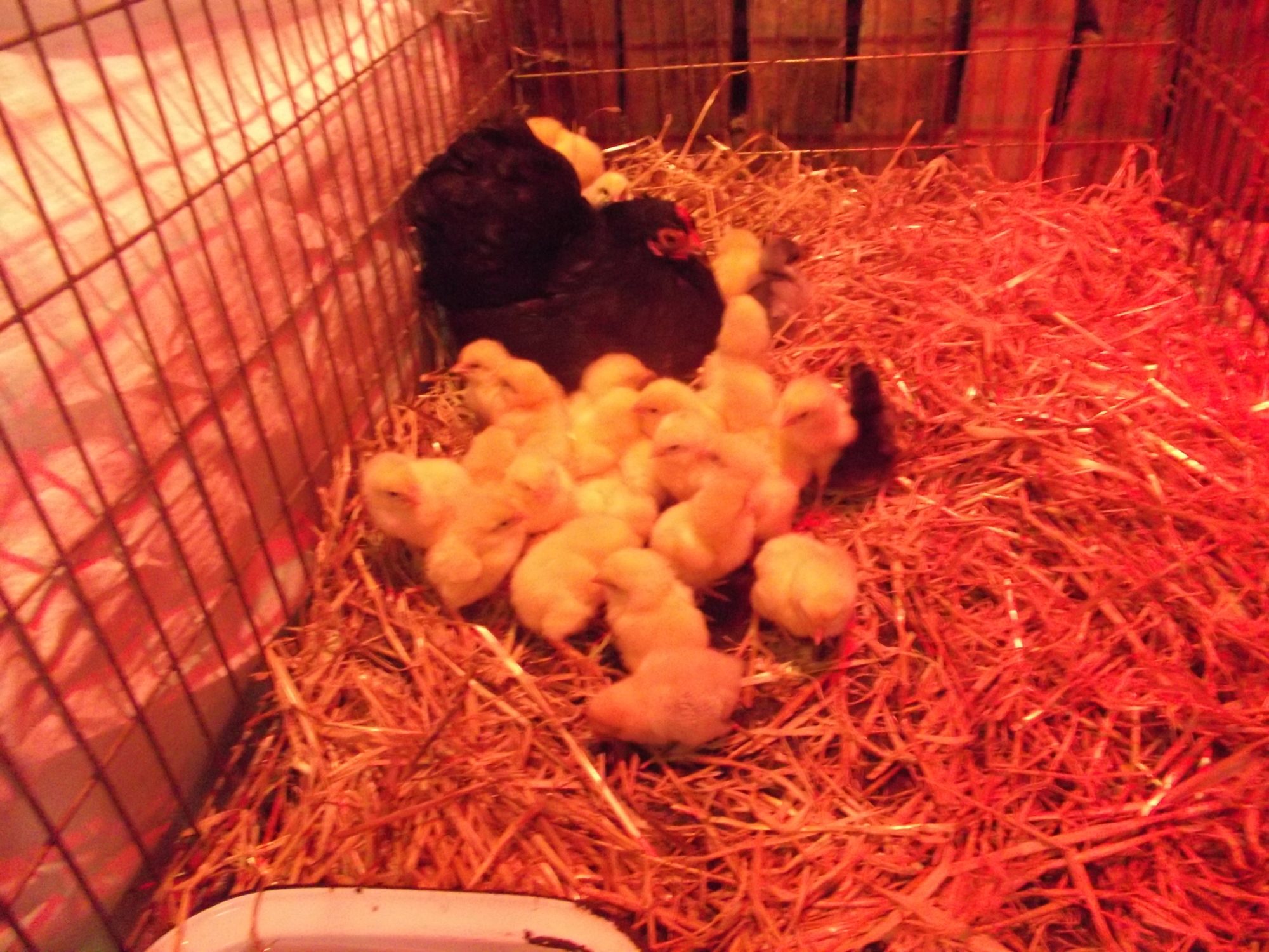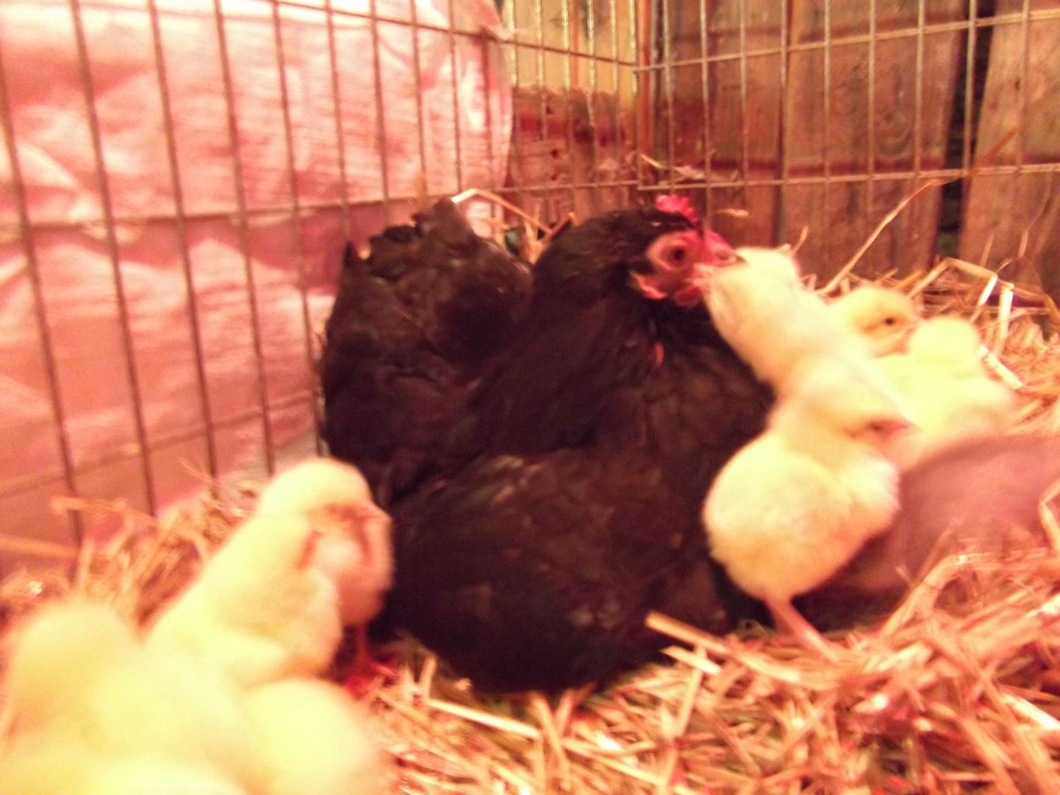 Thank you! If you haven't been following my earlier thread this morning she had three chicks and we bought 26 and put them in a cage next door and they squeezed through the bars to her. She doesn't have the room for all of them but somehow they almost fit!
