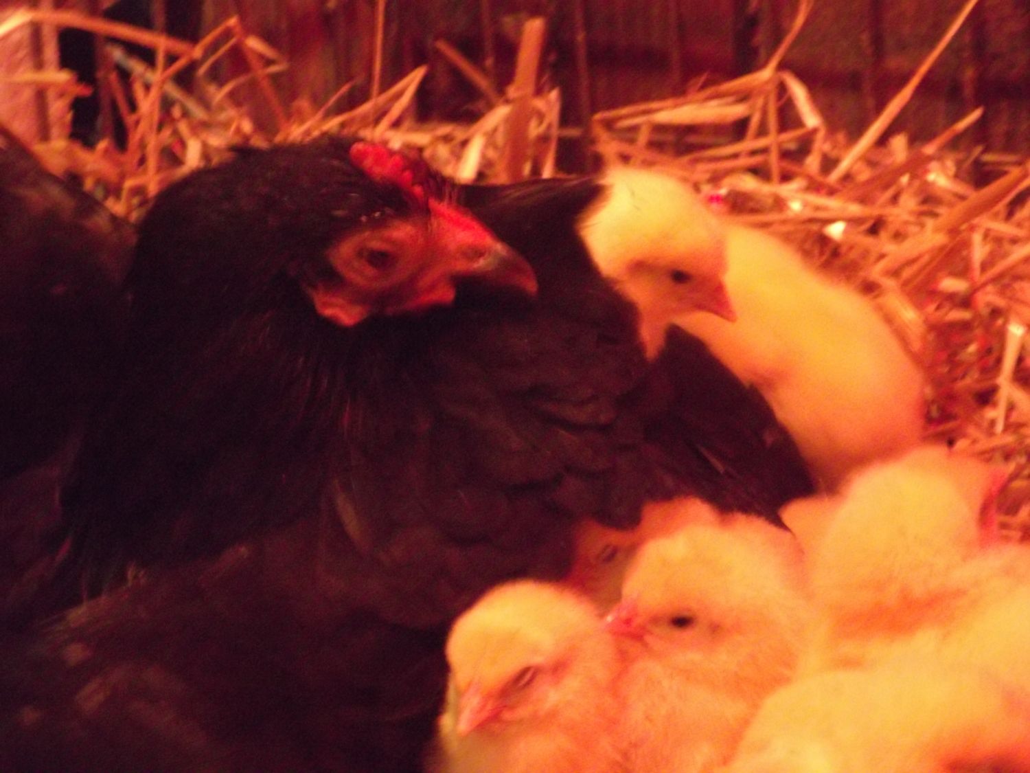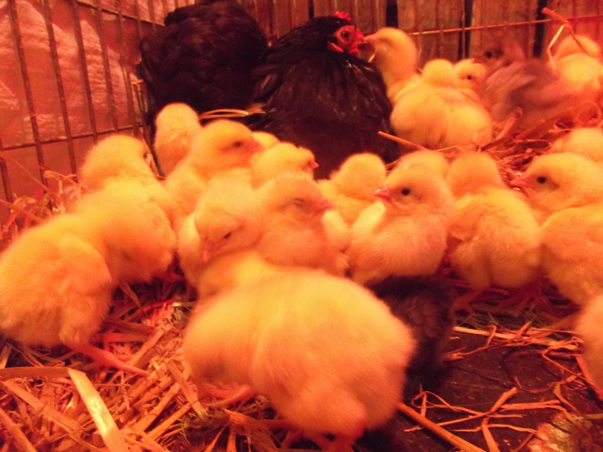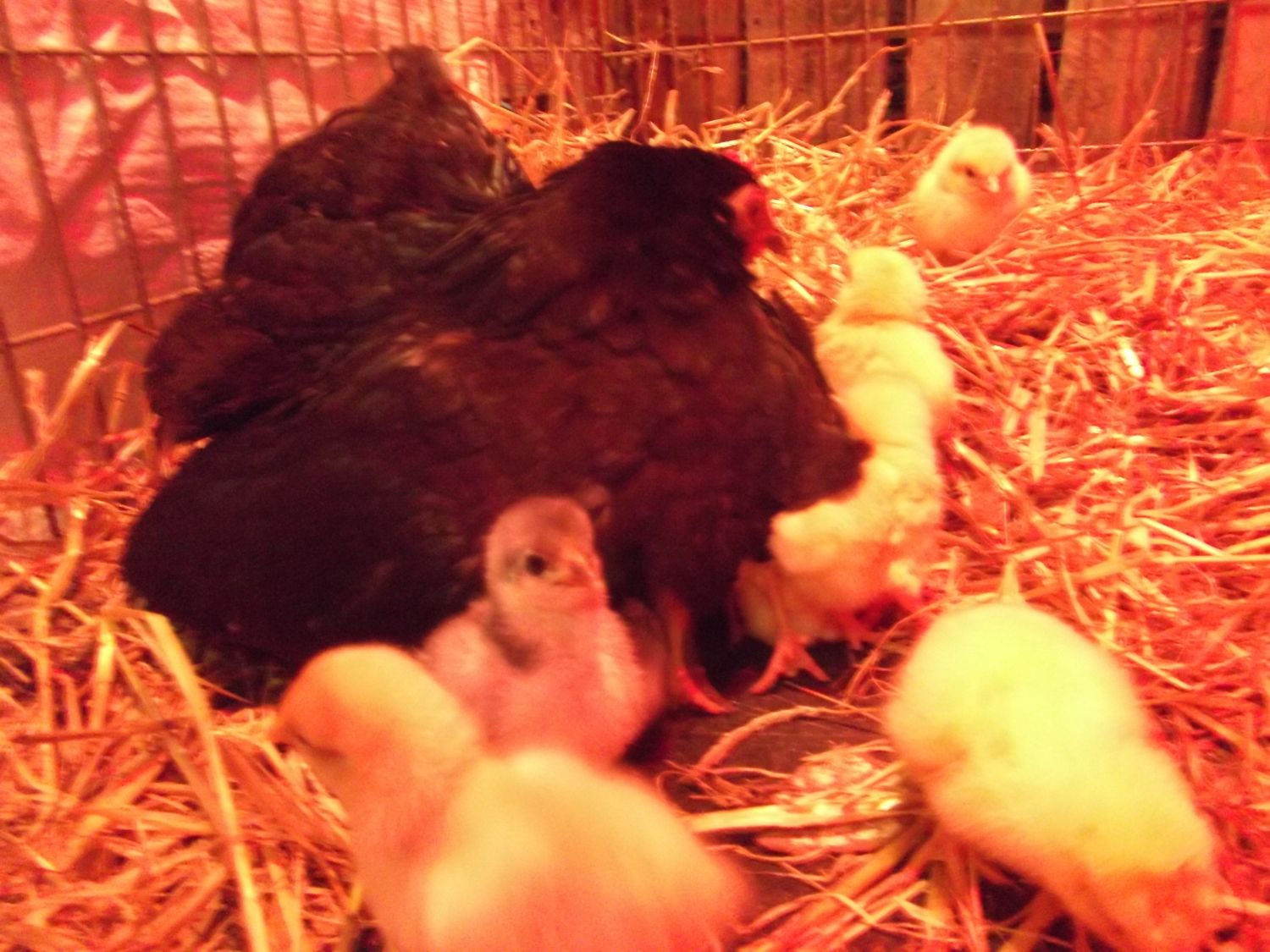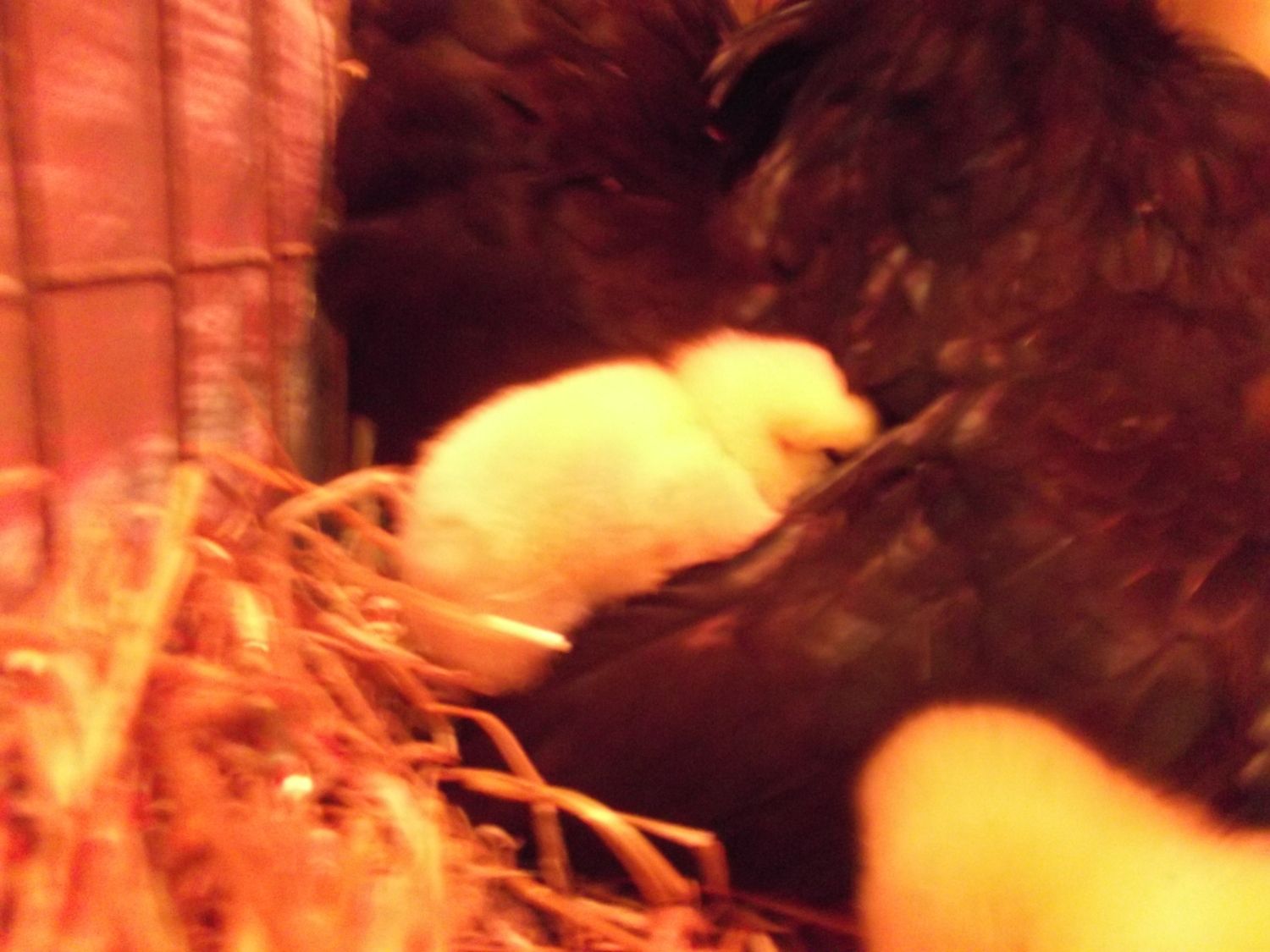 Thank you! If you haven't been following my earlier thread this morning she had three chicks and we bought 26 and put them in a cage next door and they squeezed through the bars to her. She doesn't have the room for all of them but somehow they almost fit!