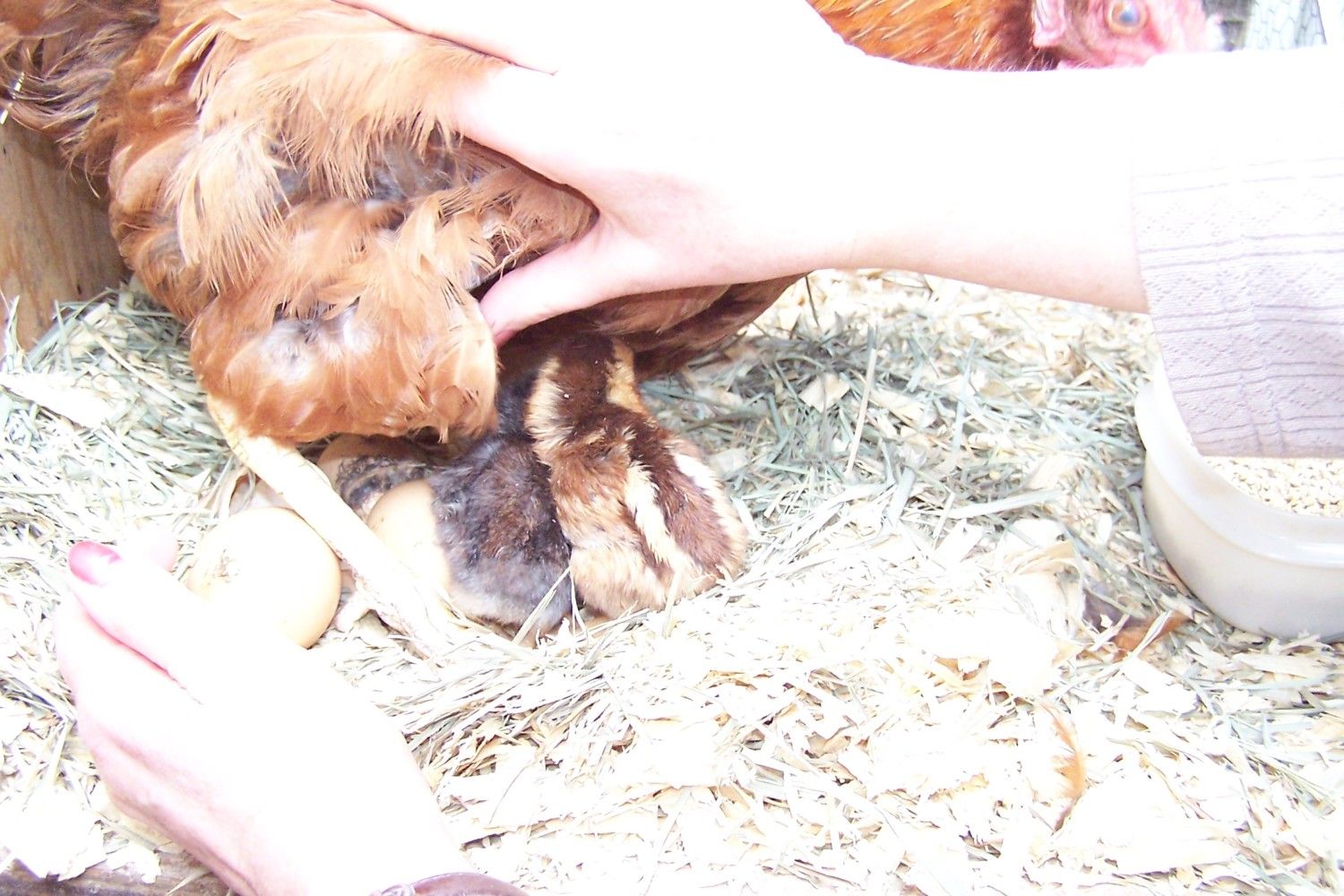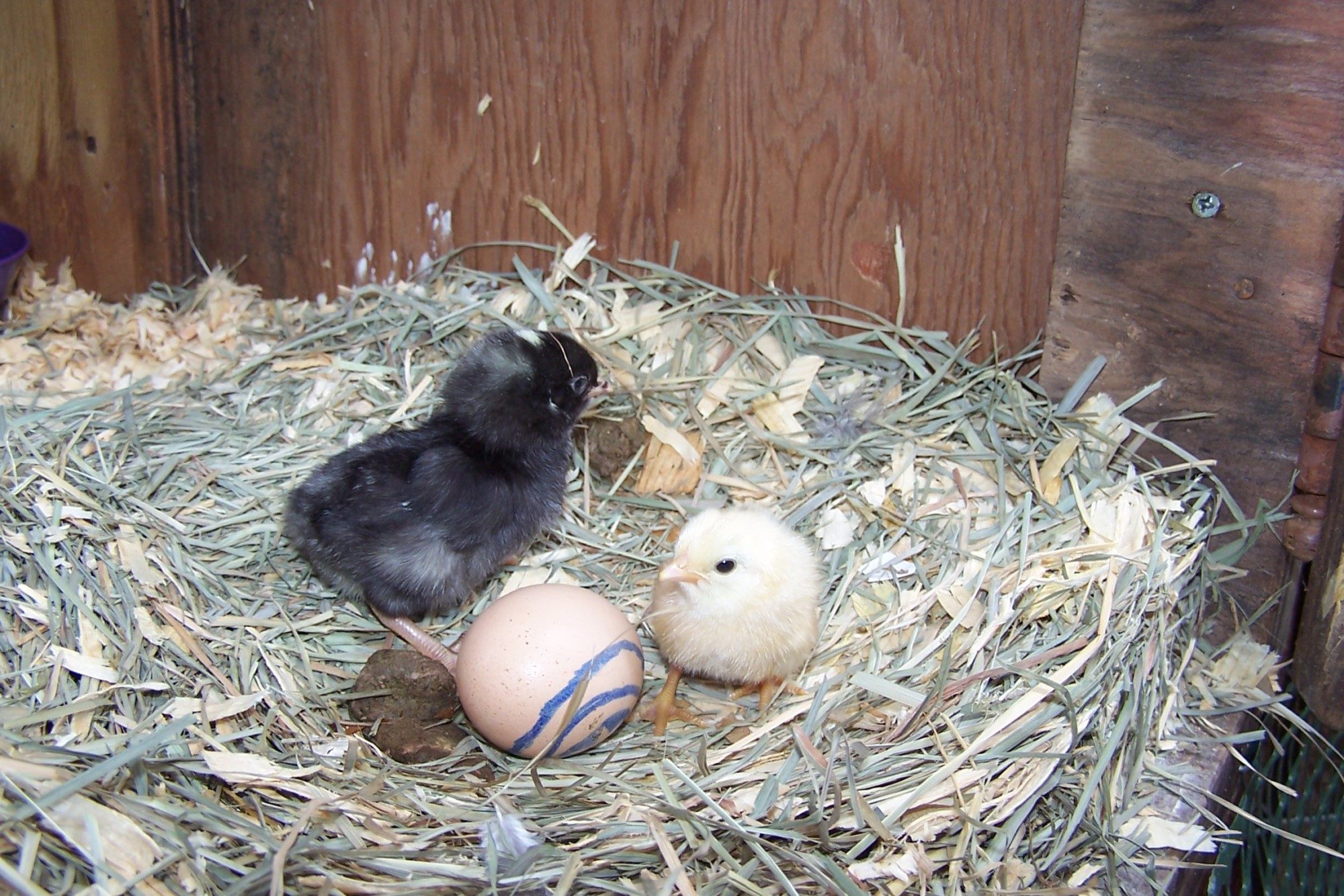 Here are photos of my 5 new little hatchlings...1 day old....hatched this weekend under 2 broody moms (a Welsummer/RIR mix and a Silkie)....and honestly about the cutest chicks I've hatched to date. I got the fertile eggs at the feed store who said the seller told the store they were "pure breeds" ....but I'm thinking the chipmunks are mixes and at a loss as to what breed(s) those could be as the egg shell colors were wrong for Welsummer or Brown Leghorn. I love the names and the way the eggs were marked congrats I only have 7days until my hatch and from the looks of it it looks like I have a 100% hatch Anyone have guesses or ideas? The eggs we set...uhm I told my daughter to mark them (thinking X for fertile)...and she "marked" them alright...and yup...we named the chick from the Comic Book character set on the egg it hatched from. Batman, Spiderman, Leonardo (blue shell), Ms. Marvel, and the Flash hatched....5 of 15 eggs (I think eggs were older than store thought too)![]()