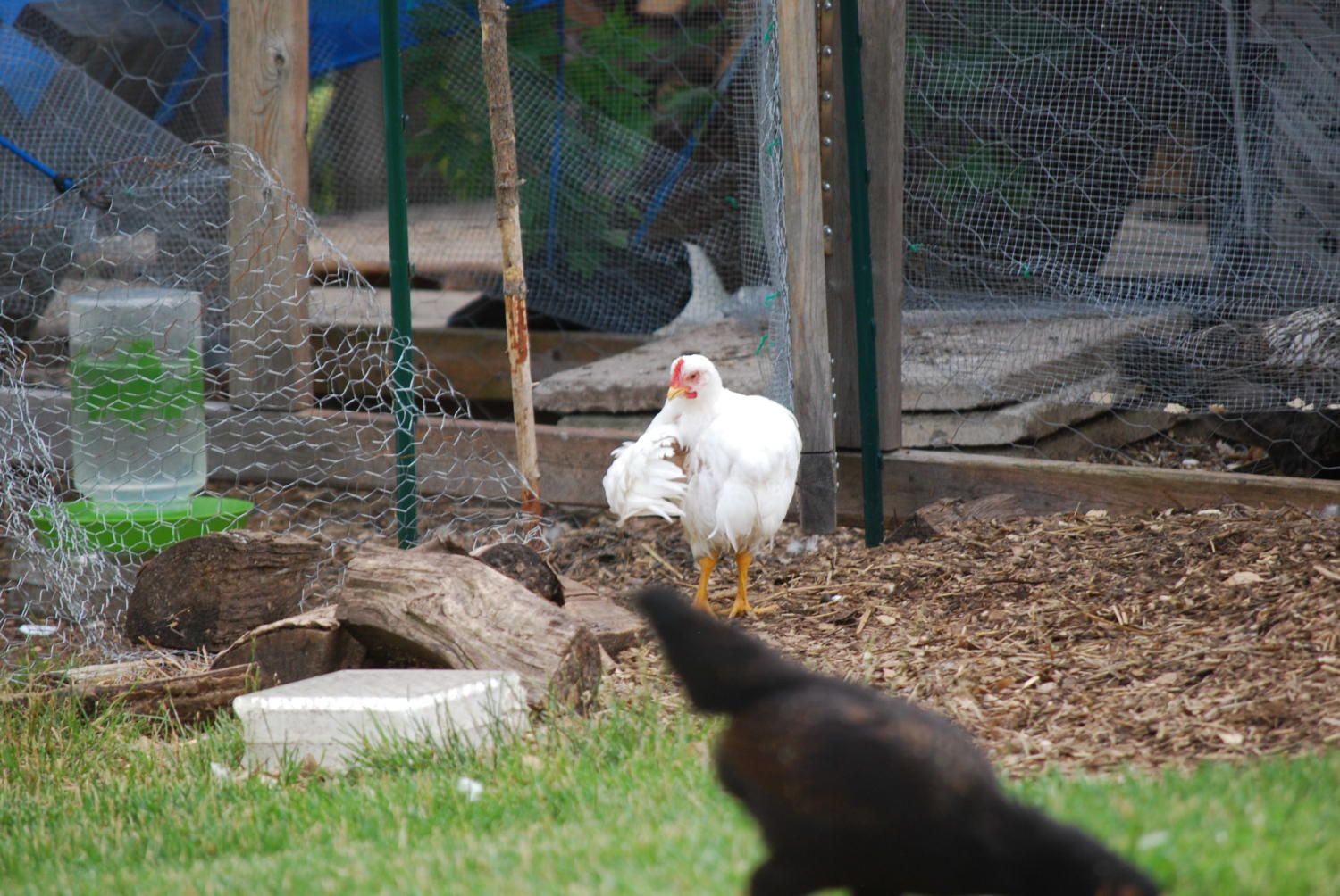 Here's my 8 week old white rock roo after his swim in the pond! My dog spooked him when the bird was ranging in the long grass. Poor thing flew up and into the pond, about 6 ft from the bank. He did a great job of swimming! Holding his wings out next to him & kicking his feet. Wish I had a picture of that!