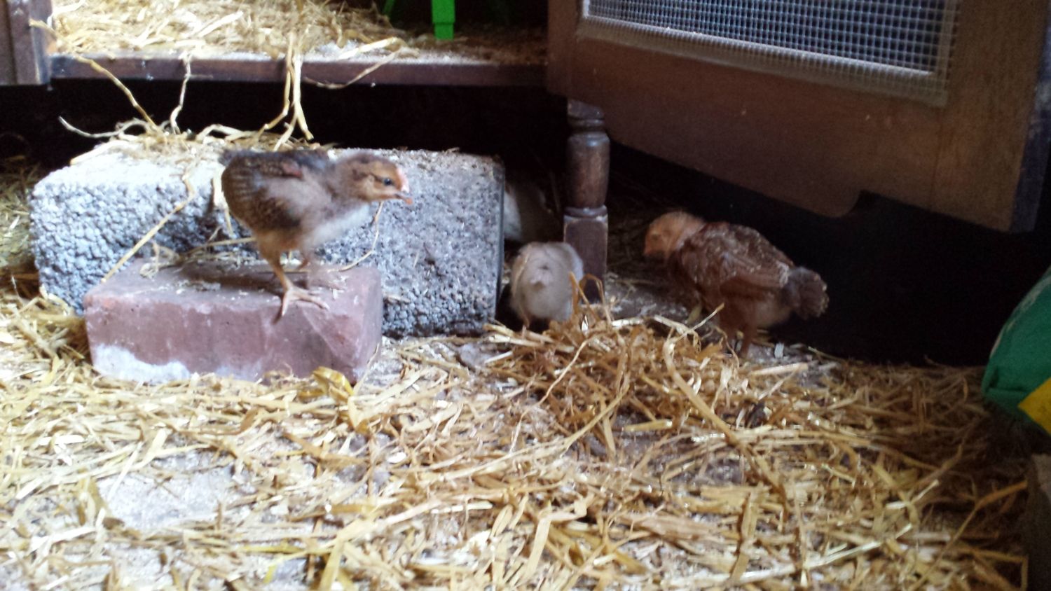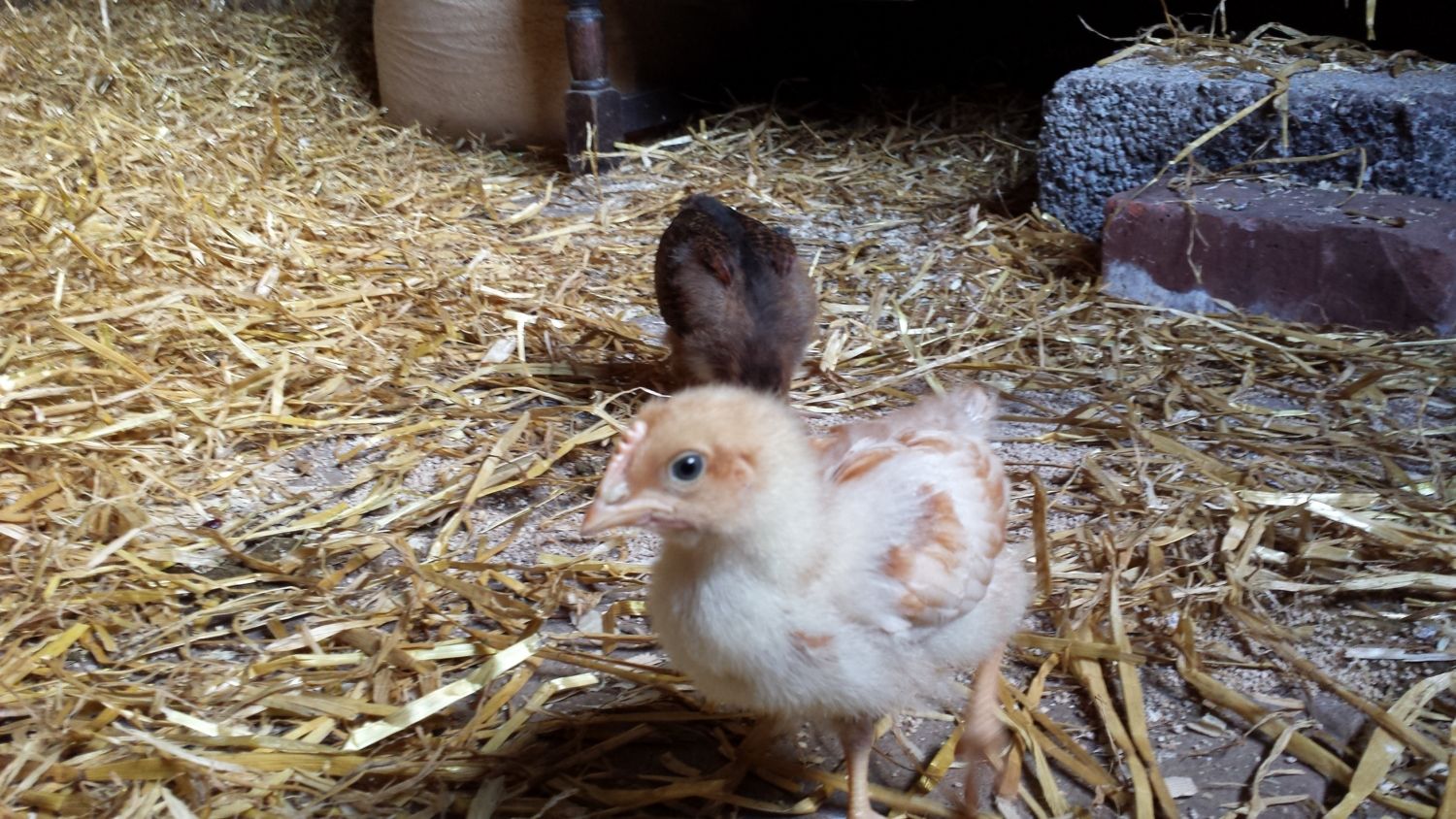 Here is my one and only chick from last summer's hatch. He rode around on his momma's back until he was too big to carry LOL