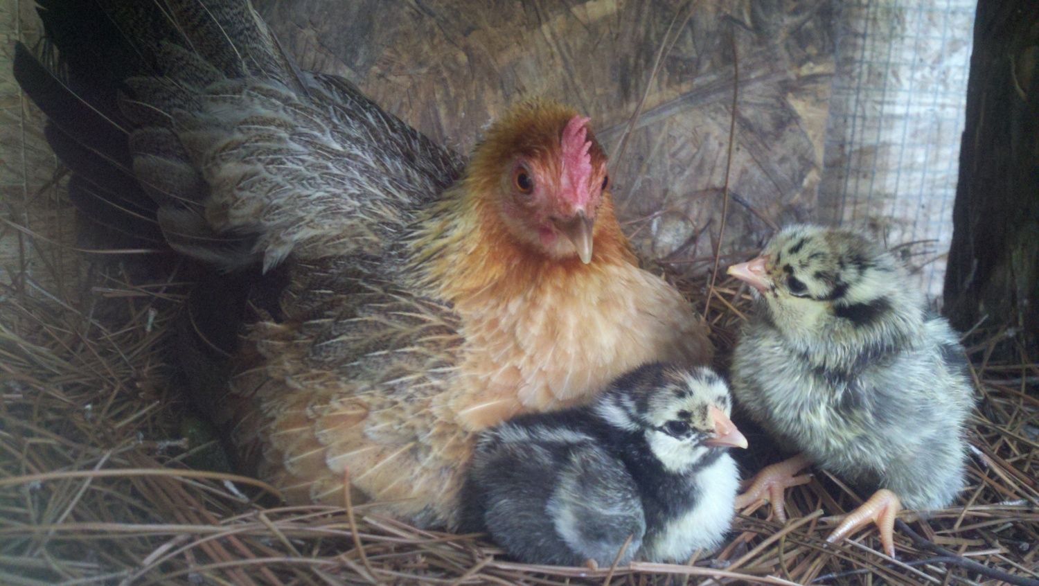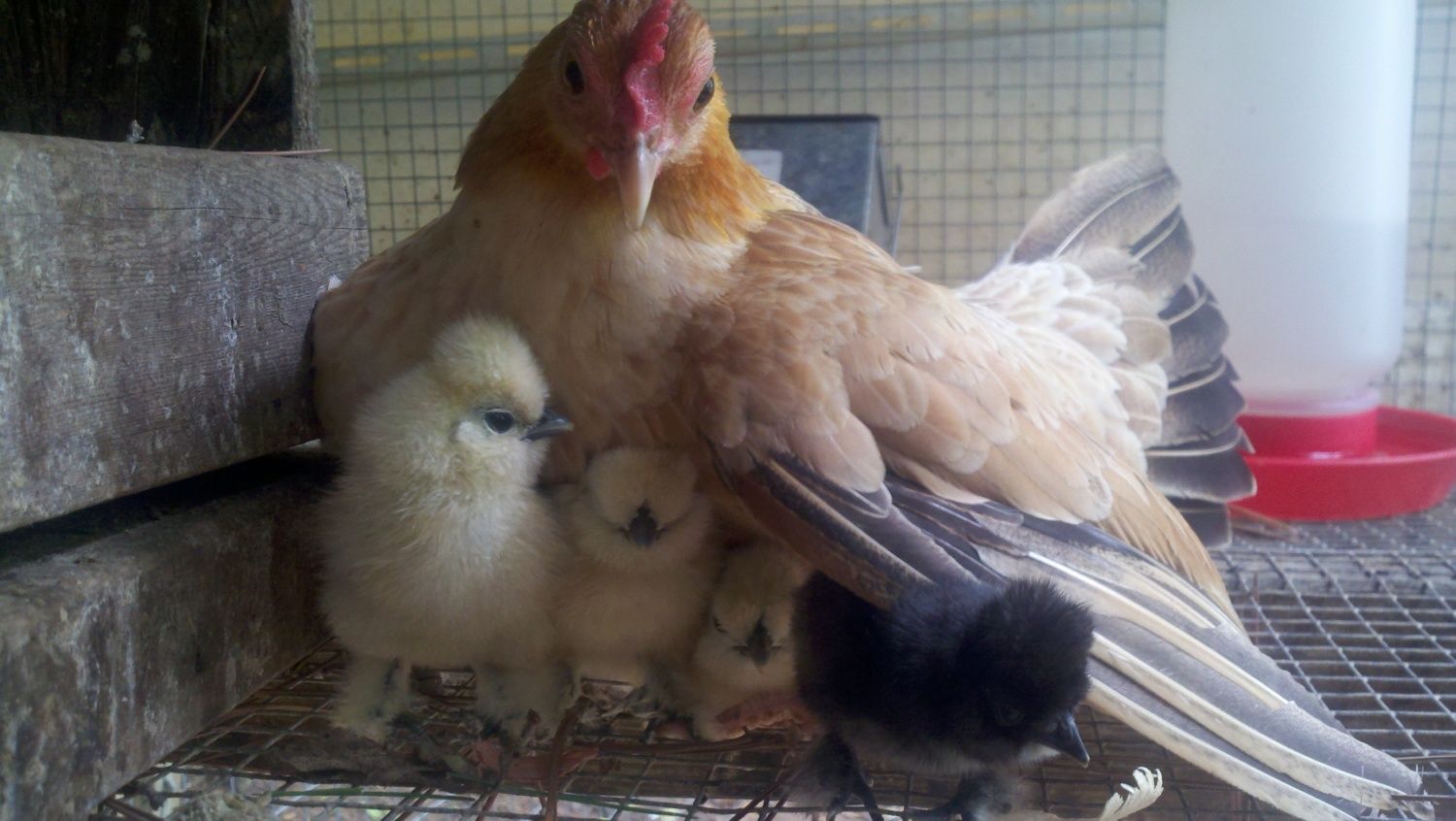 OEGB hen with silkie chicks
