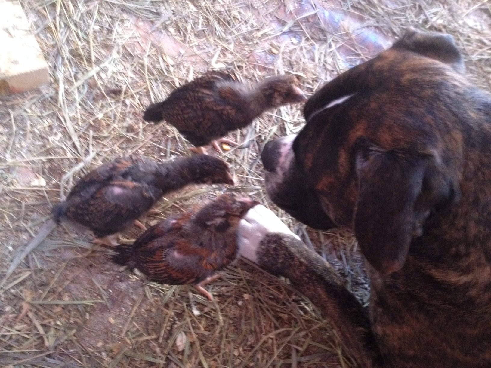 Yes she flew up there herself, surprised us both a bit! Hector loves his chickens and it's mutual. I think he was more excited than me when they started hatching in the incubator. His nose was pretty much glued to the window the whole time!