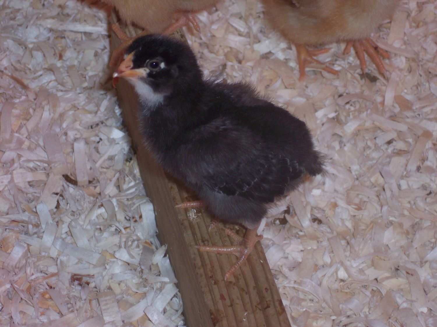 this lil girl is 11 weeks old which has no name cuz i have sum chicks i cant tell apart is my lil sweetheart always first to greet me at the gate and first to hop on my lap