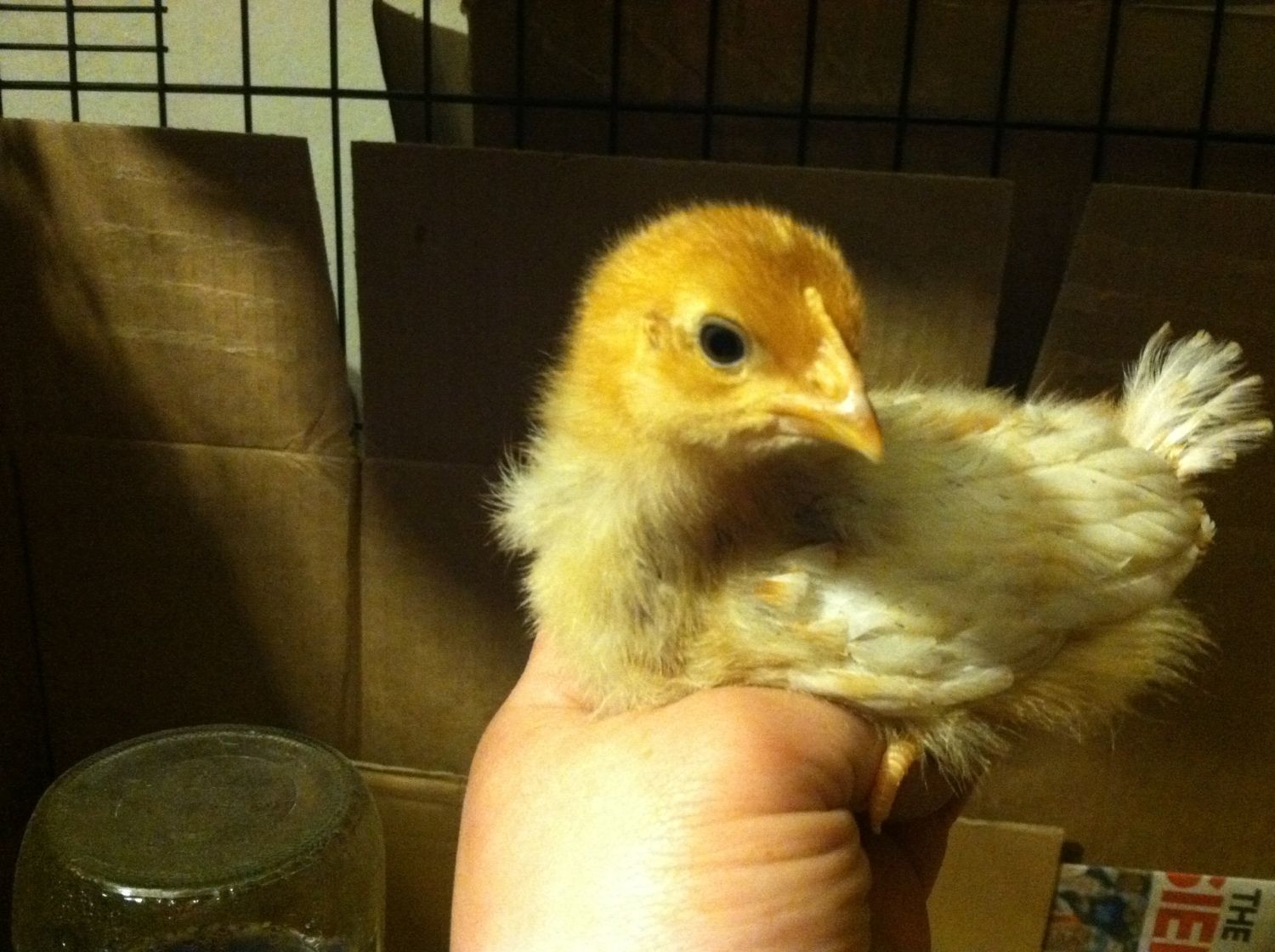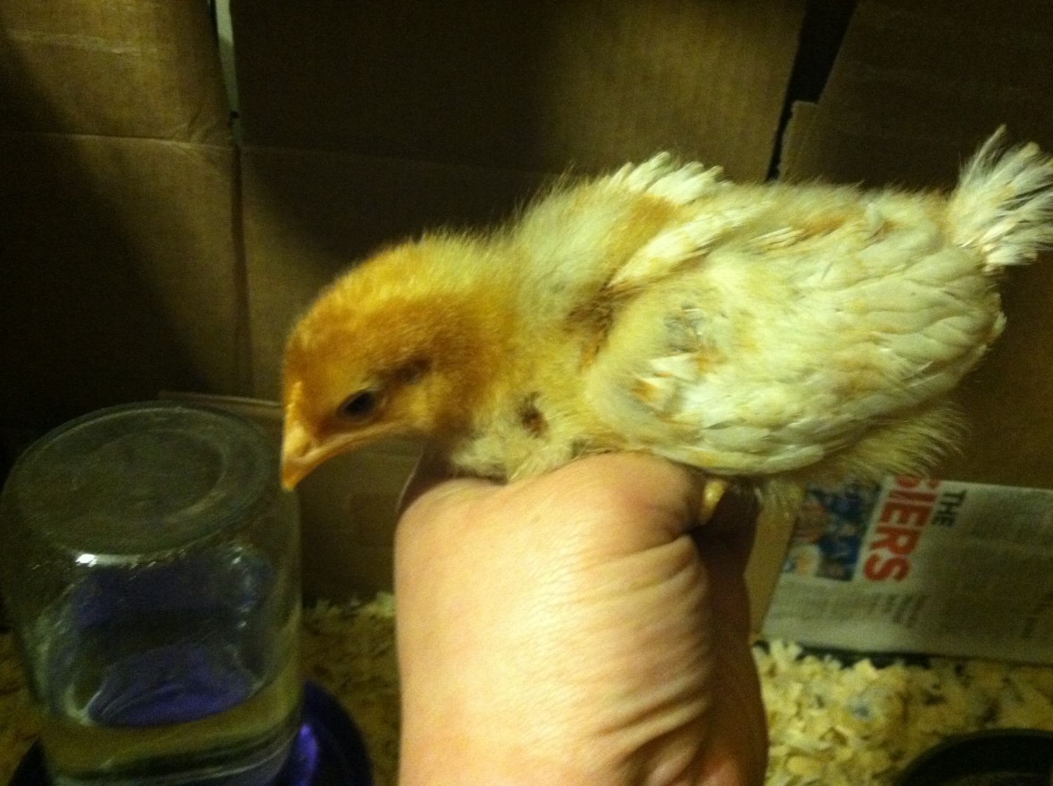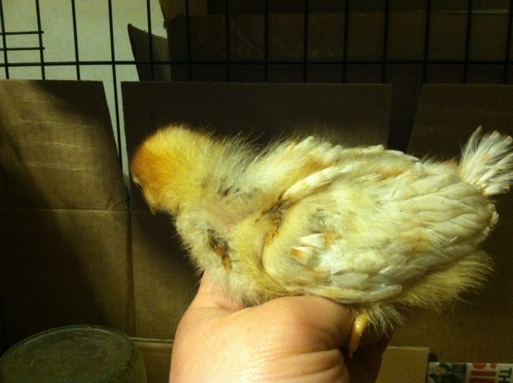This one is C.M. X Red Sex Link I have another one of this mix not pictured. They are 1 week old now. I'll have 28 more various breed chicks coming at end of the month from a hatchery. Yay!