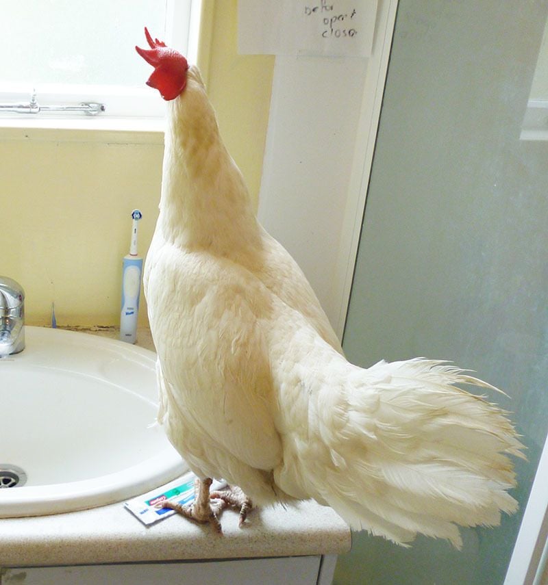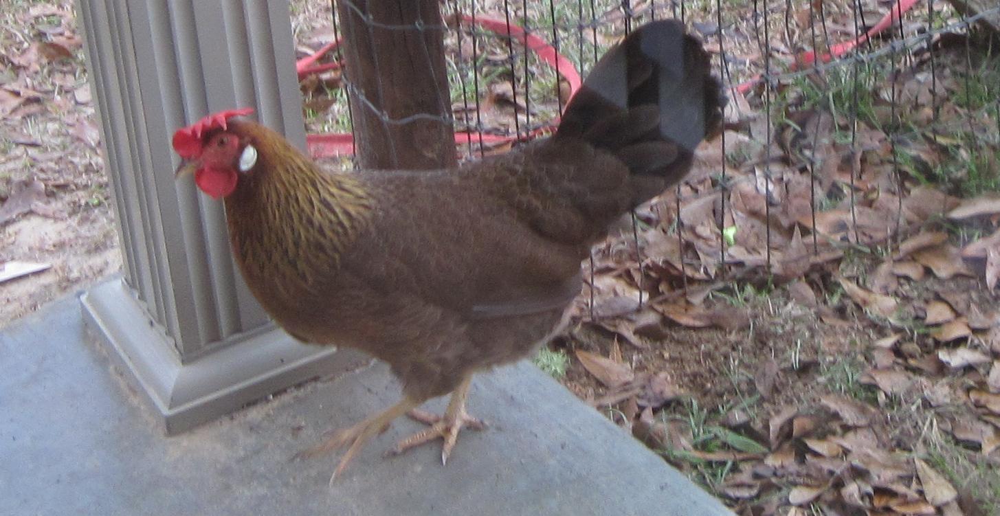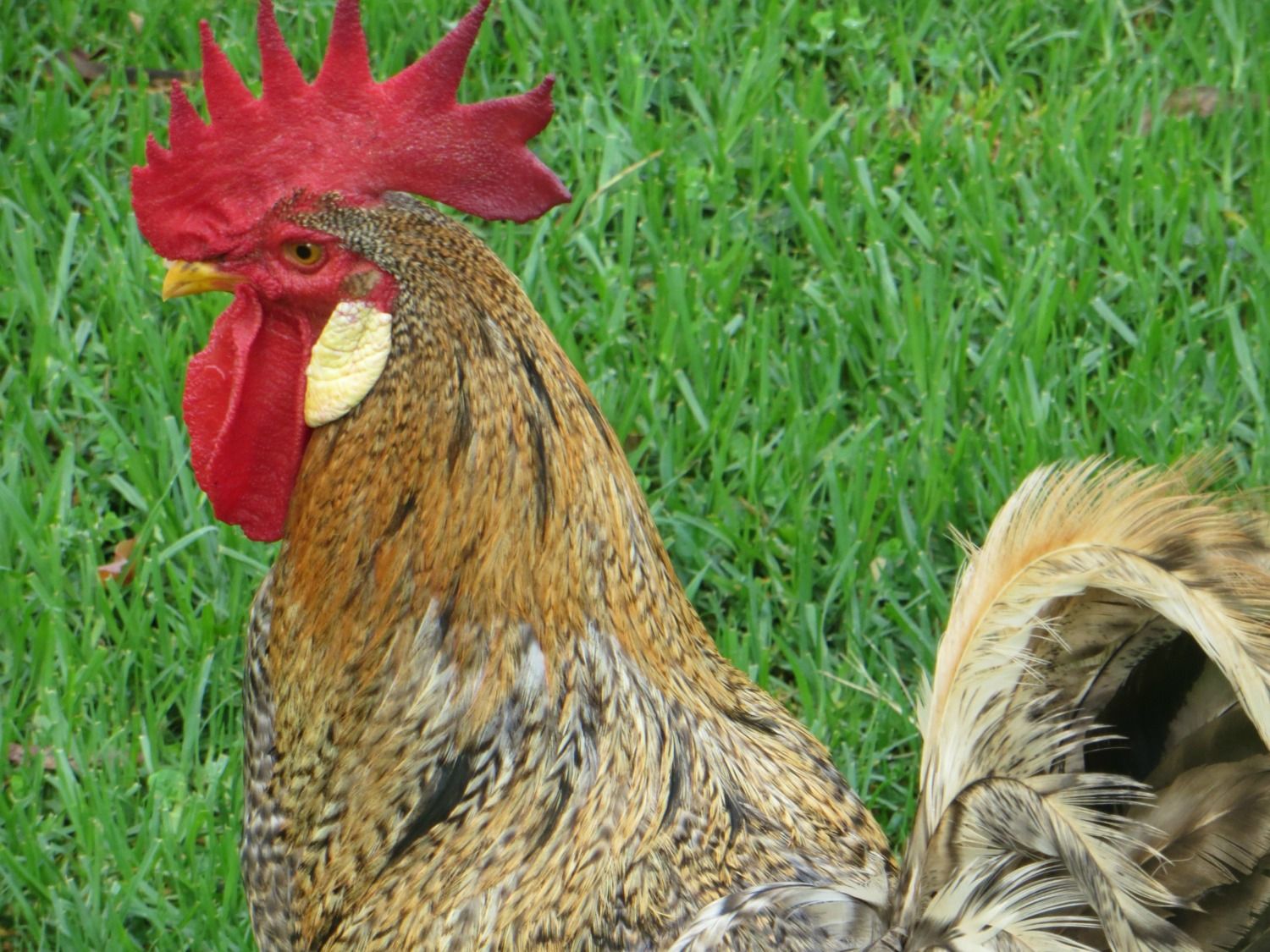 He is a gentle fellow and looks after the hens protectively but does not boss them around. And he's very handsome - even my kids think so.
