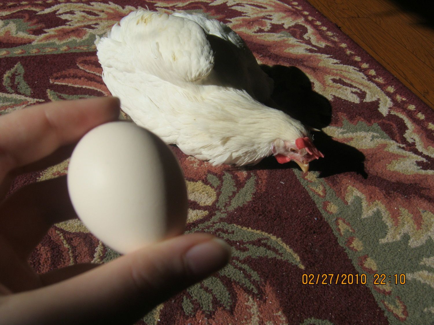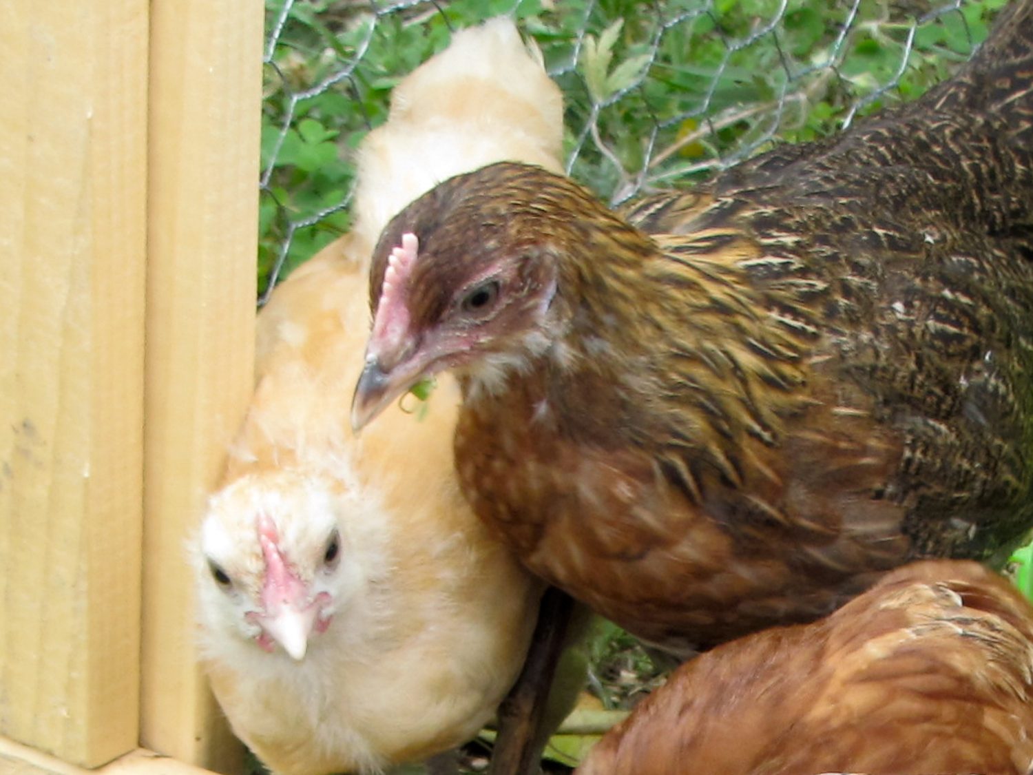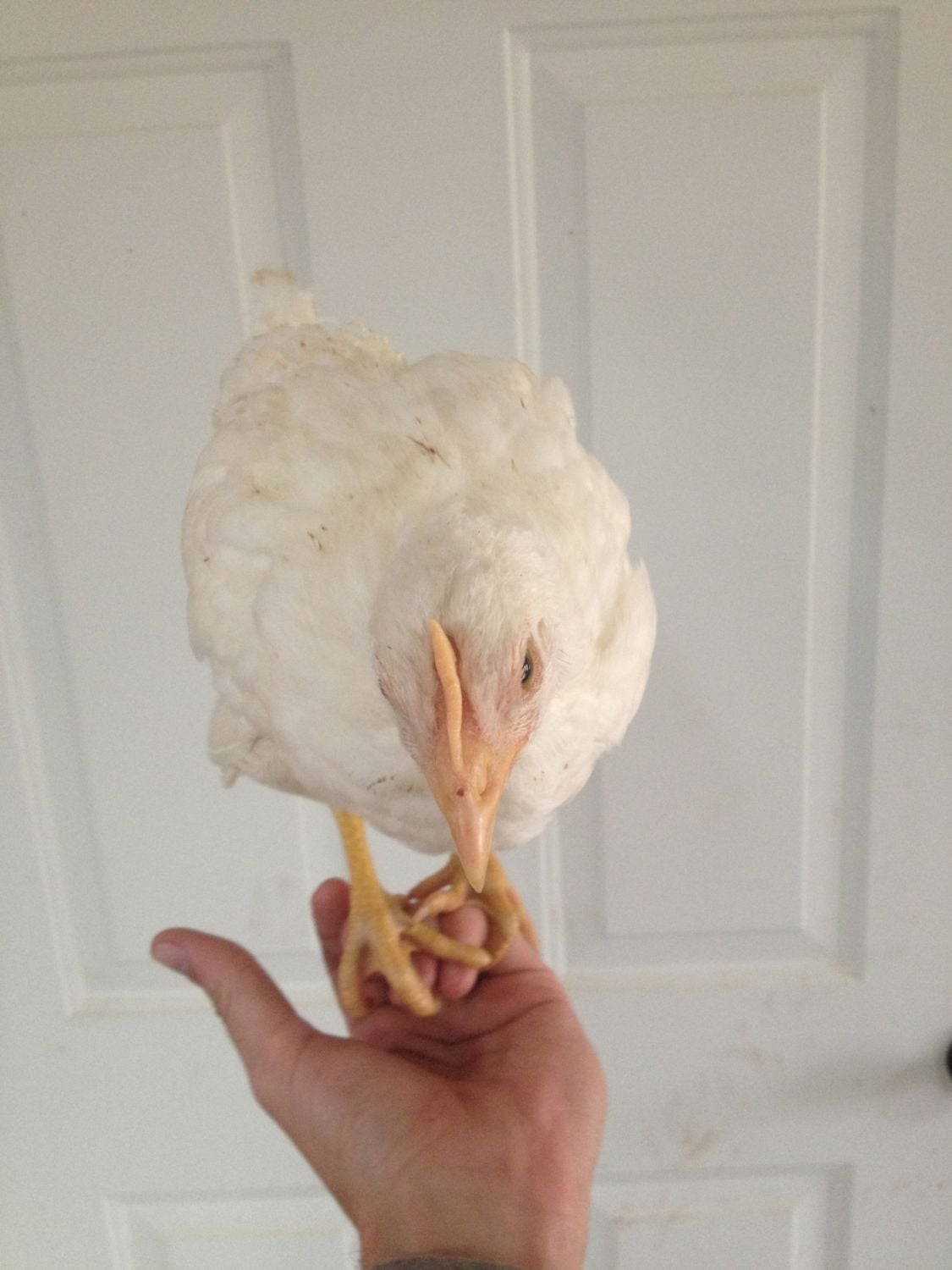 These are pictures of my 1 1/2 month old pullet, she goes straight for my hand now because she knows theres a cricket treat waiting for her somewhere she just has to get on the hand and I take her to the delicious treats!
