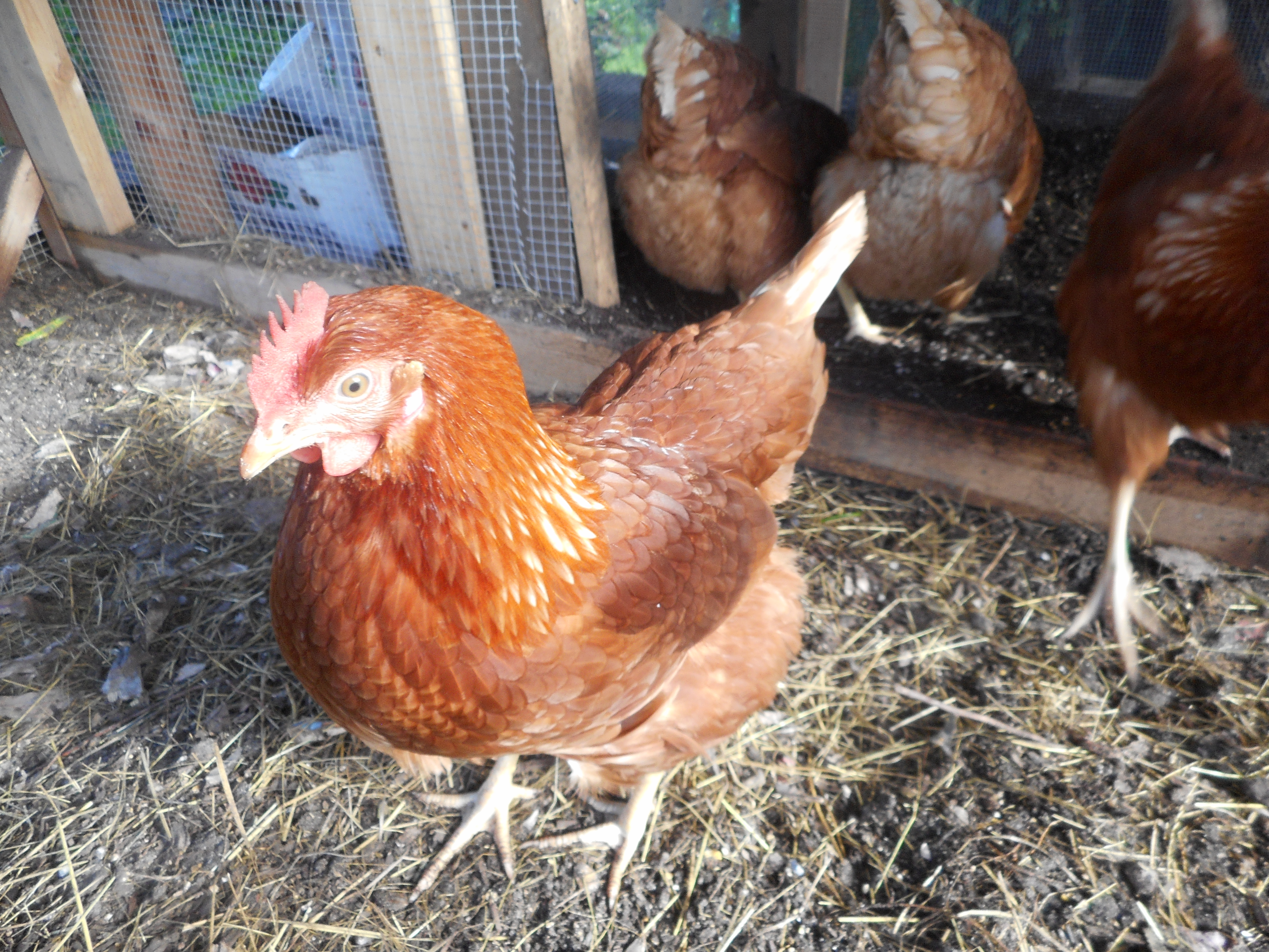 Pretty sure it was my RIR and not my Amber White, because she's a week older. They both started squatting 5 days ago. So proud of my girls!