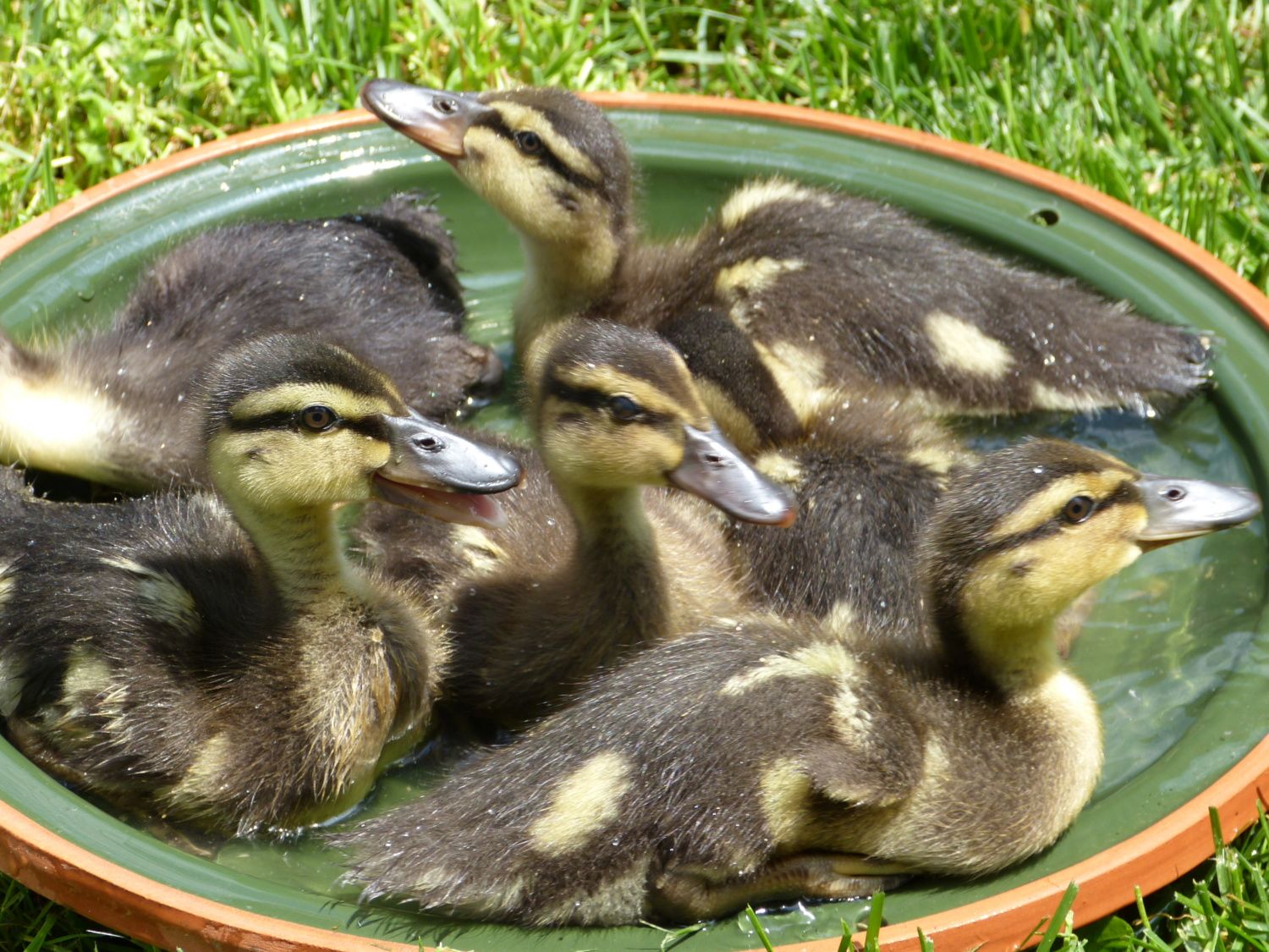 These are my five Mallards and one Swedish Black (George - also seen below standing guard over the dish)