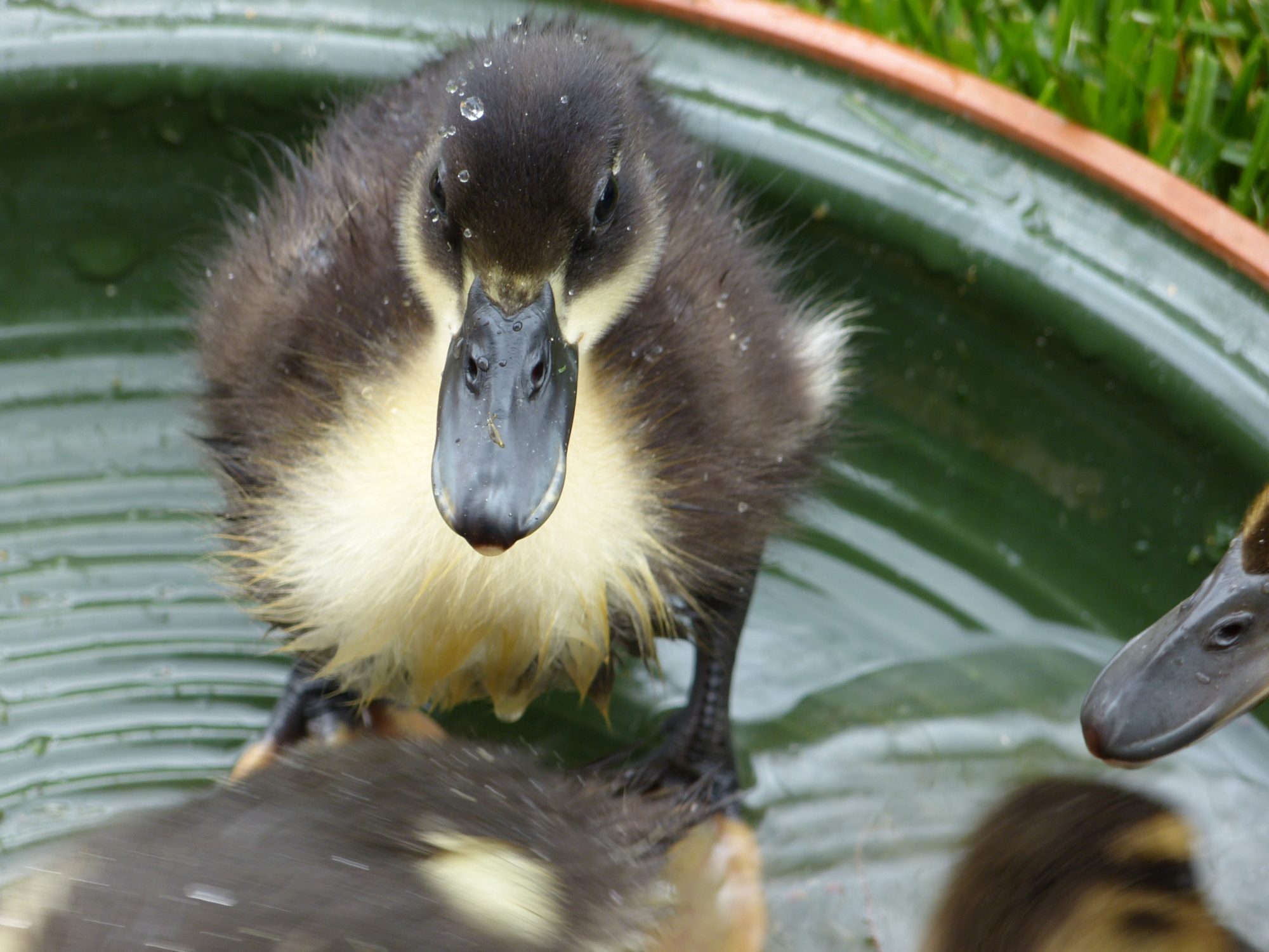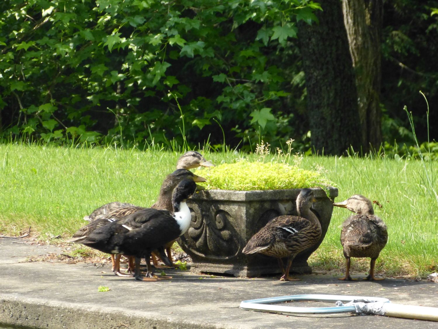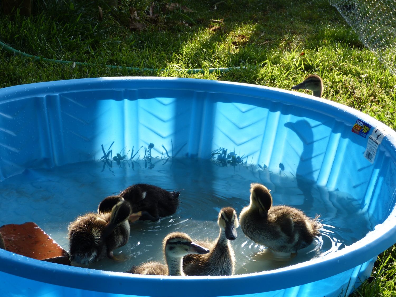 This was the day I introduced them to the kiddie pool. The one outside walked around it a half dozen times before figuring out how to use the steps to get in.