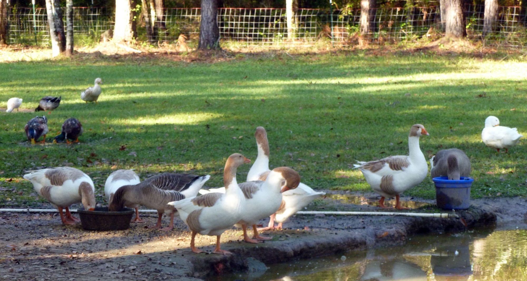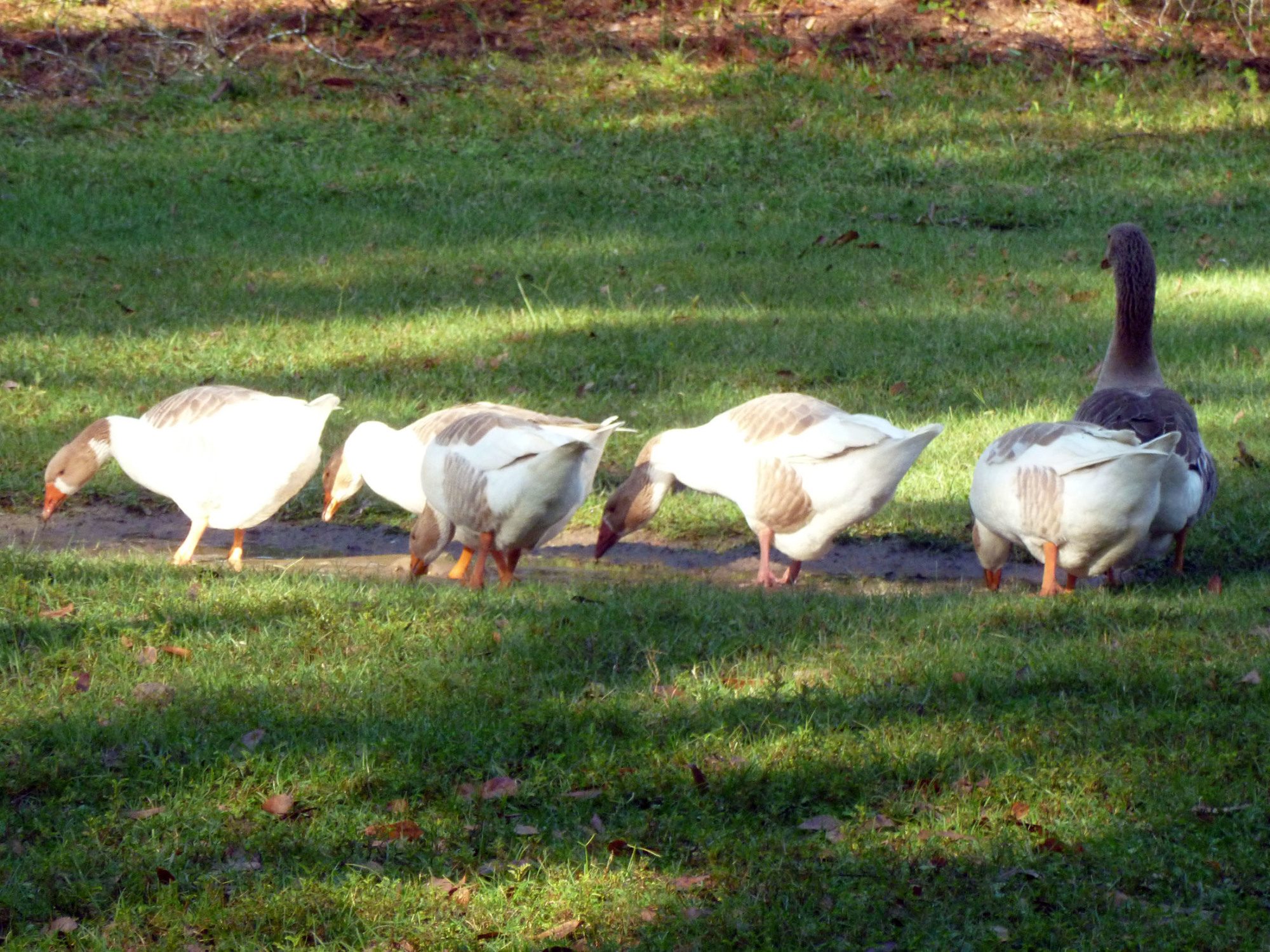 For those of you who think geese DONT dig holes....here are some of mine enjoying a mud puddle this morning.