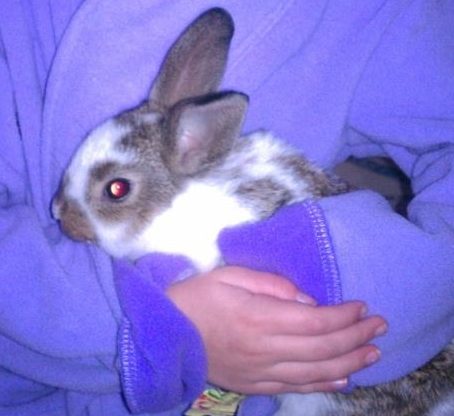 One of my bunnies, which has passed away. When she was a young bun she used to steal the eggs out of the nesting boxes. I think she was training to be the Easter Bunny. LOL.