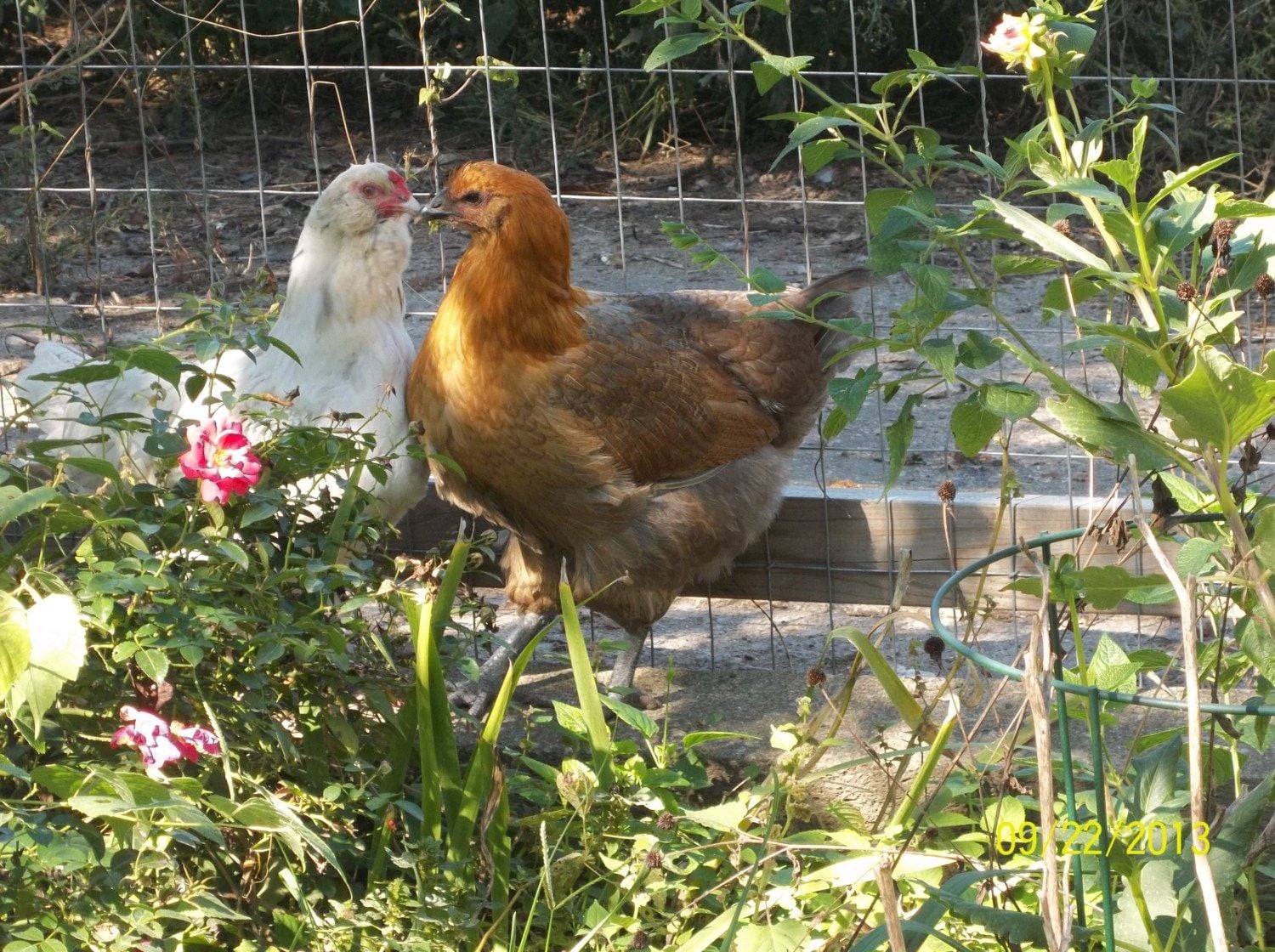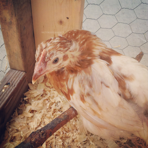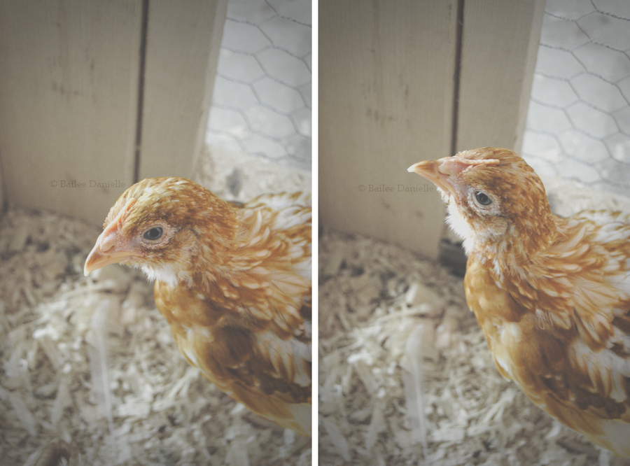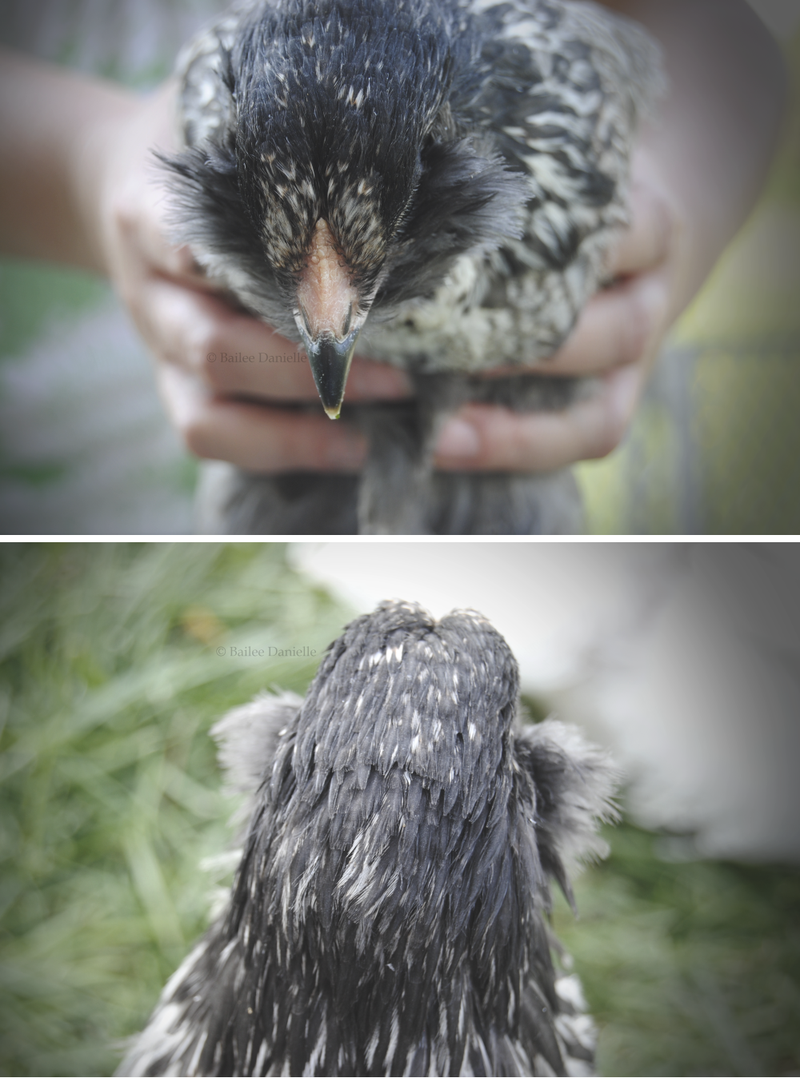 Here is a pic of mama hen on the left, an ameraucana mix with a blue splash marans, and her baby who is a buff chantecler and blue splash marans mixture. They are very tight, always together.