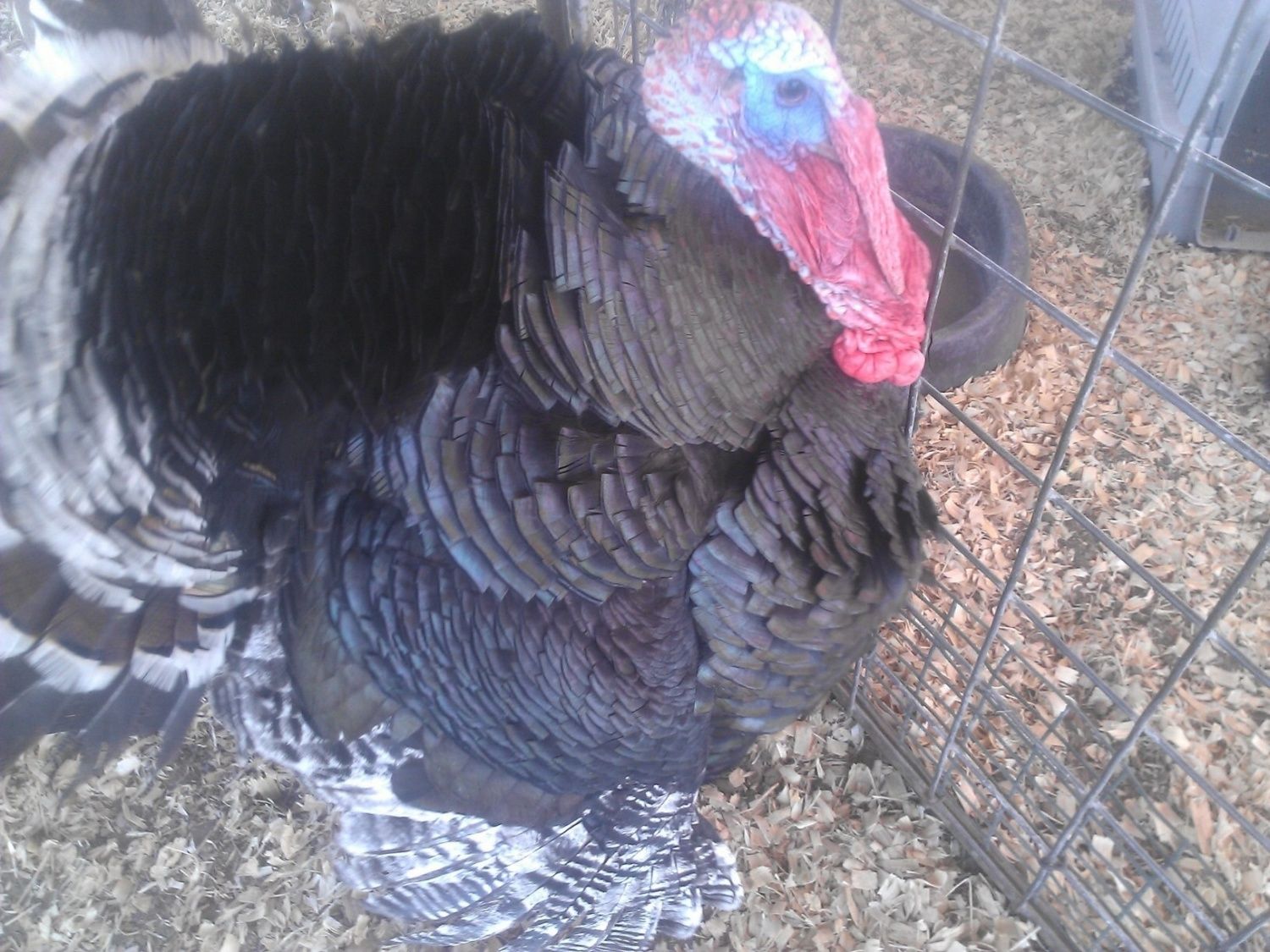 A few of my favorite pictures of my turkeys. All are royal palm/bourbon red crosses.. I am amazed at the wide variety of colors created with this cross. I recently killed all but 2 toms, keeping a bronze one and a royal palm colored one for breeding. The toms I butchered were big, meaty, and delicious. I love turkeys, they're equal parts beautiful, lovable, and useful.