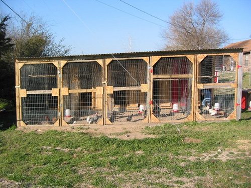 It seemed a very space and cost efficient design. The exterior of the full space was predator proofed very well and the modular walls were lightweight chicken wire as they only needed to keep the birds separate. They were solid for the bottom 2-3 feet though, to prevent the roosters in adjacent pens from seeing each other. It was quite ingenious, IMO.