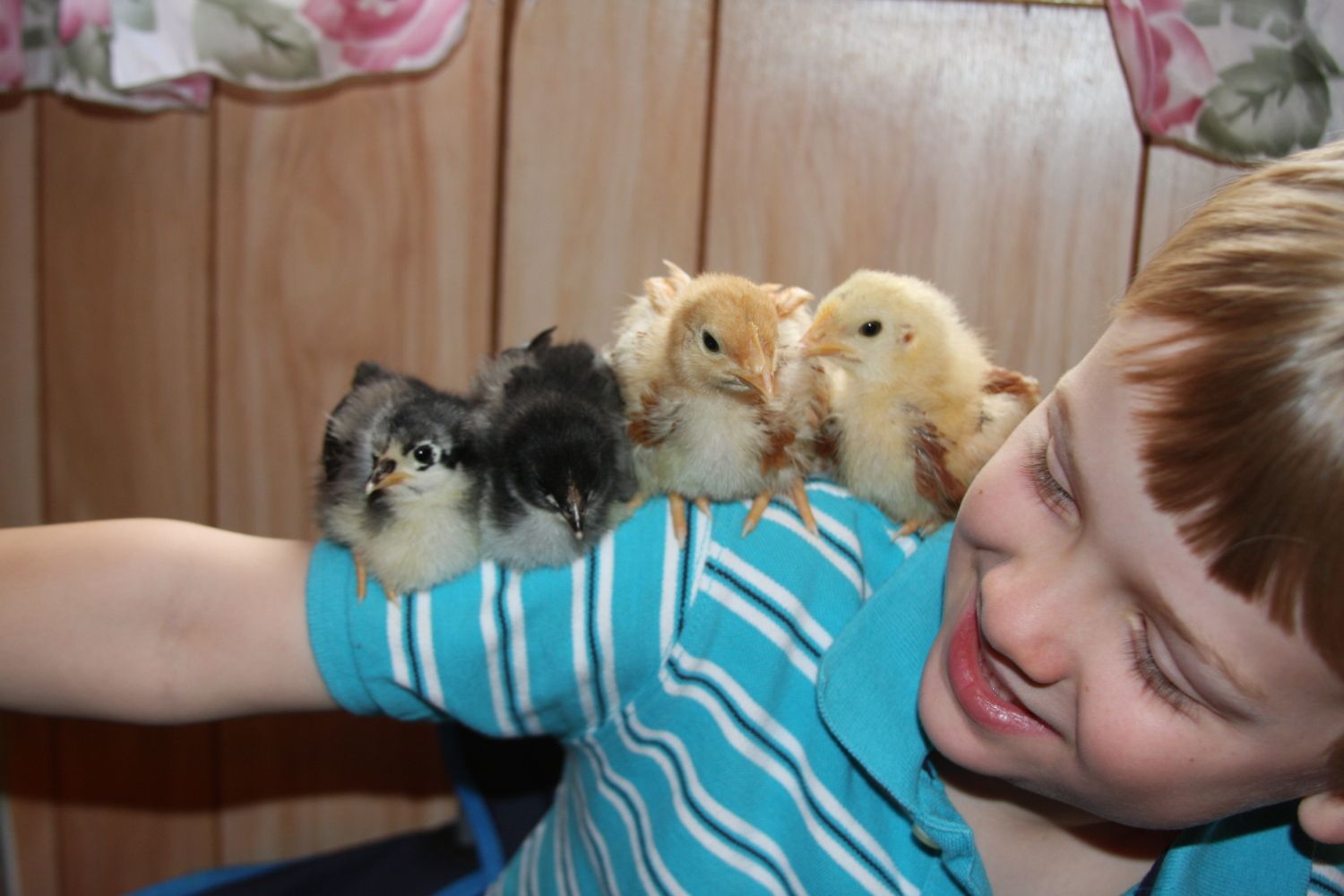 these cute lil' fluff-balls were born under my house at the beginning of April. We incubated a younger group, who were born on Good Friday. This latest group, which I have yet to snap, aside from two cuties, includes a d'Uccle chick and a naked-neck...cutest lil' ugly thing ever! I need to get a pic of the naked-neck...