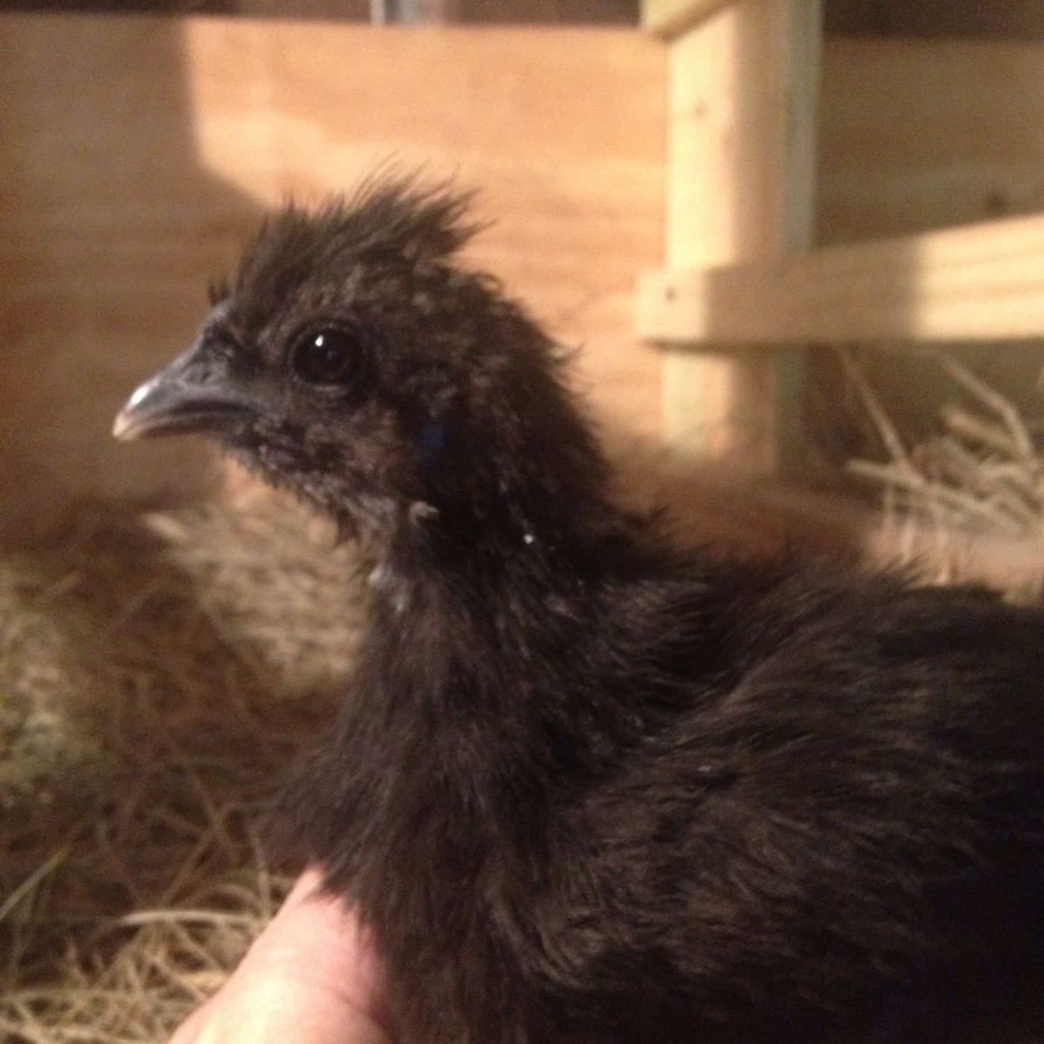 I had no idea what this one was at one day old, but I happily figuring out she's a silkie!!!