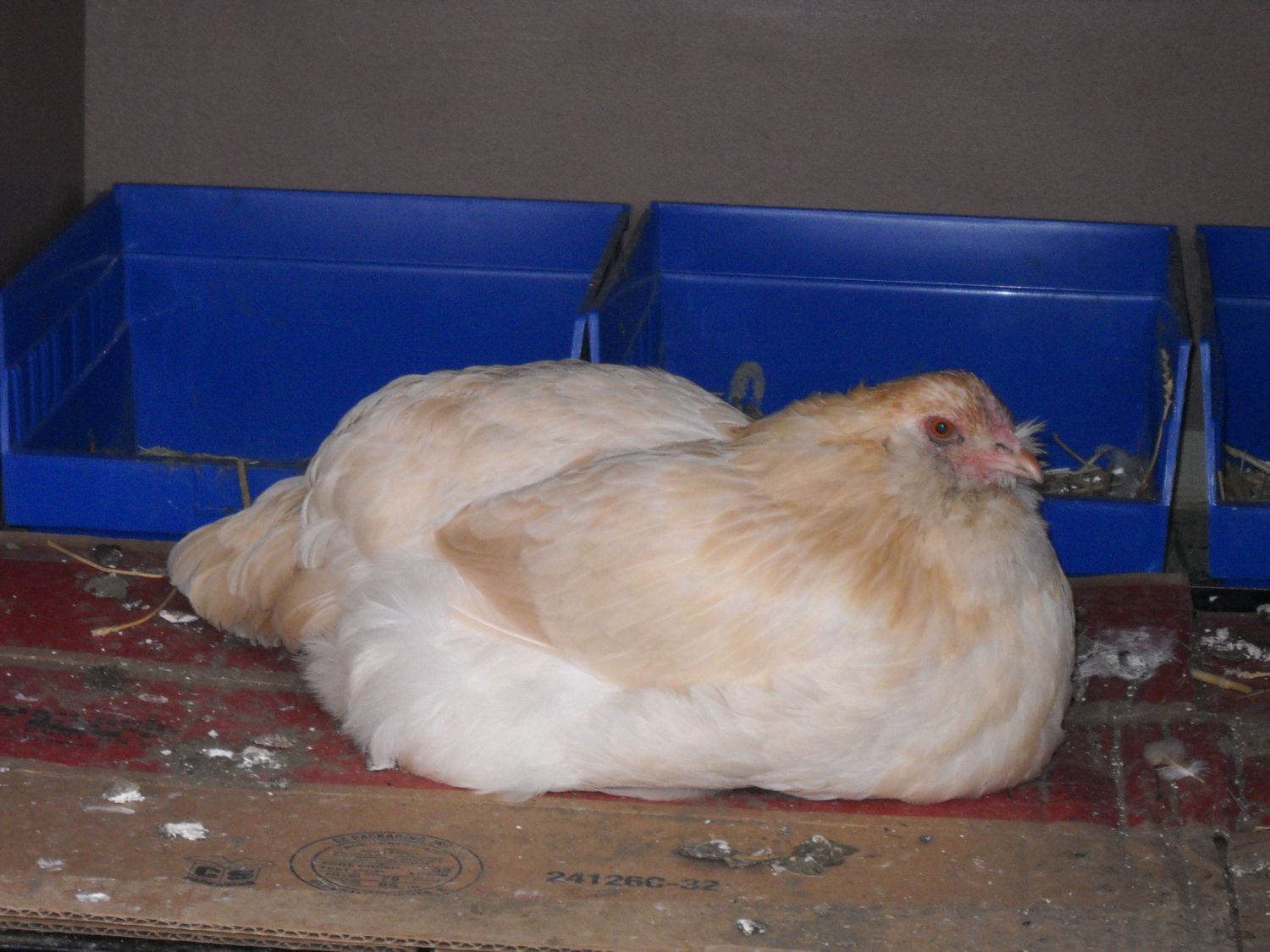 Here she is happily hanging out in the new coop! Ugh! Wouldn't be my choice of where to hang out but she seems to like it!