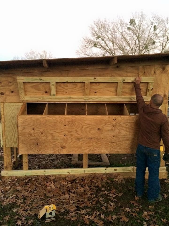 Make a cinderblock step up to retrieve the eggs. You probably have plans for steps or something but couldn't help noticing how high the nestboxes were. That is a huge nice coop and 8 hens will be a good fit. If your hens turn out like mine most of them will sleep in the nestboxes LOL. I don't mind if they're happy. For our own comfort we set a pop-up canopy over our first little coop for us to stay dry when retrieving eggs in the rain (never took a photo of it - bummer).
