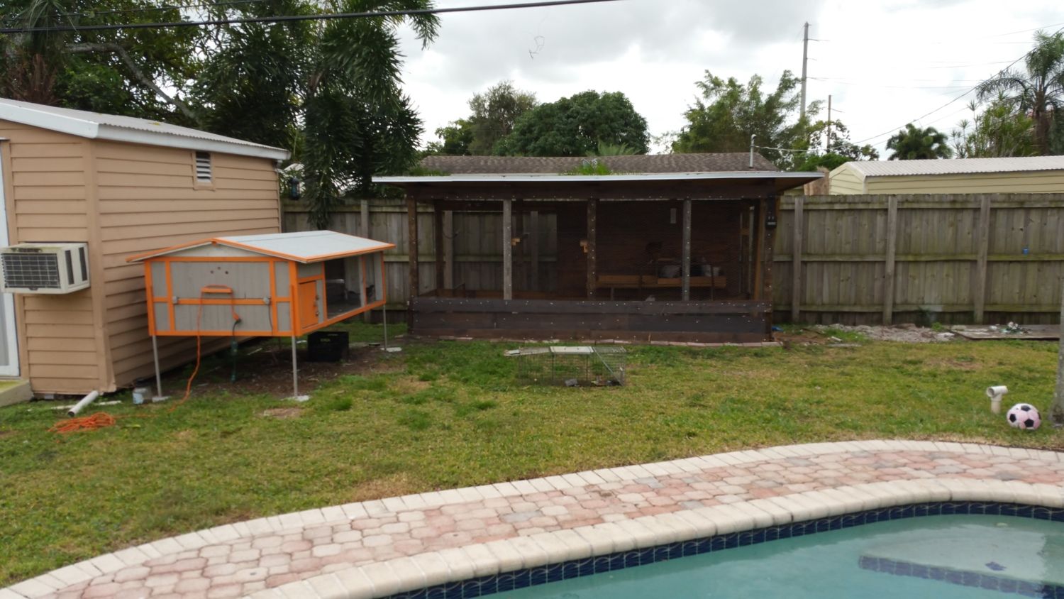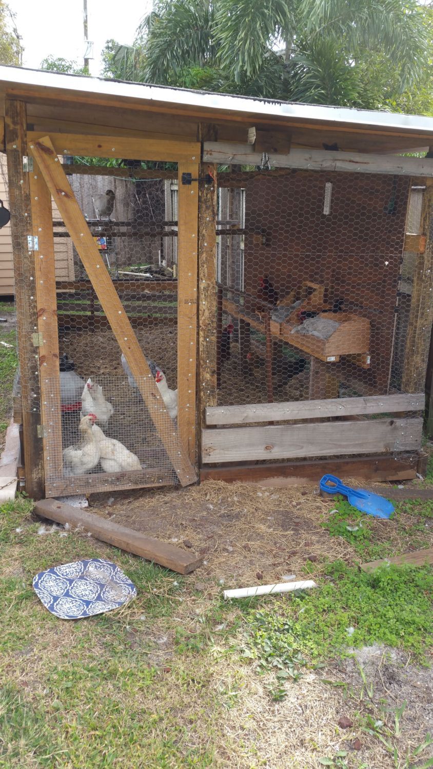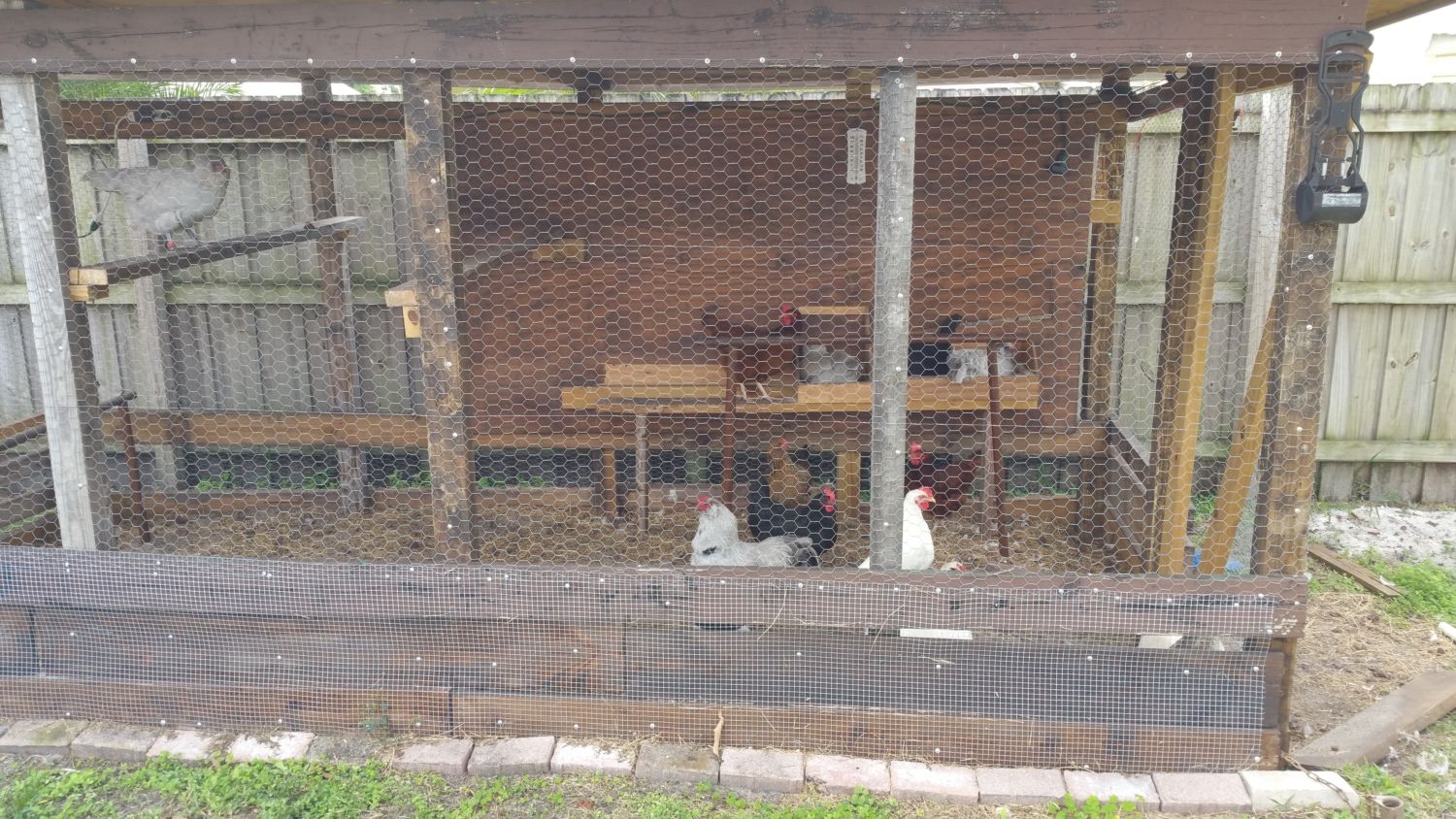 What do you guys think? I started with the little orange coop I bought for 300. Then realized I love chickens and built the big one. I was on a tight budget so I kept it simple. I love in S.Florida so I don't have to worry about cold weather. I have hardware cloth on the bottom that goes down a foot. Then chicken wire up to the roof. I made a door to walk in and use hay on the bottom for bedding. I also have a little security camera system I set up so I can get a view north and south with night vision.