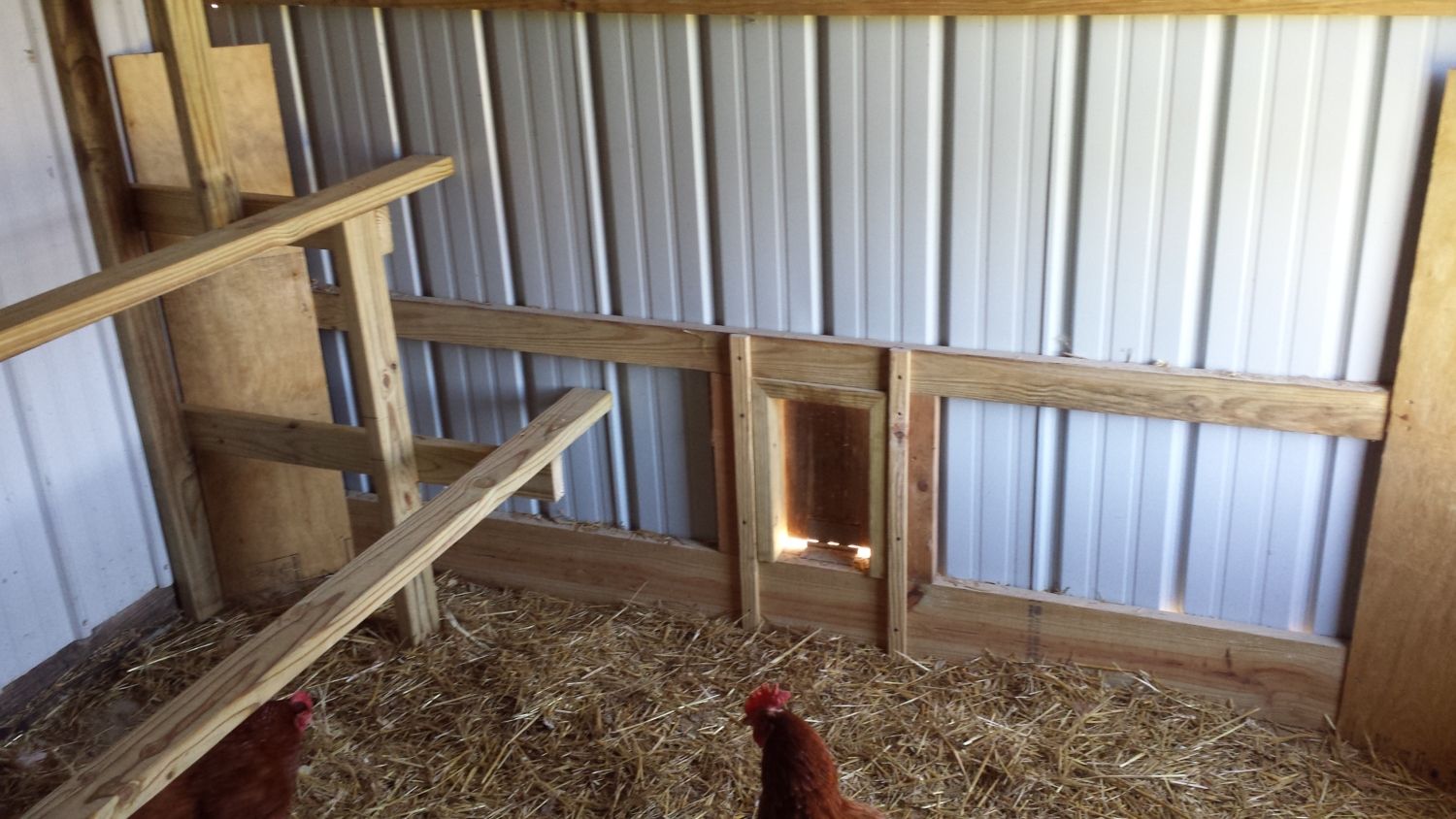 Some of the corners will be removed when I fully integrate the chicks with the hens since I will be removing the brood pens. I may just re-arrange it so I leave the larger plywood pen in place for future use but it will have to be water proofed if it stays. Still have to finish furring some of the outside wire ends etc. but otherwise I'm just about done. Decided to leave the roost in front of the nest box since they can all get up on it and the other design would be too high (for the nests). Only thing left to do, later toward fall, is to add the sliding barn door to the run for cleaning and maintenance access. When I do that I may switch the coop door to the side, inside the run for easier chore access etc.. I'm waiting on the sheet steel for the end of the run to further ensure my privacy and prevent any snoopers from turning me in. Once that's done I will feel much better about the project and anyone asking about my chickens will have to have a warrant to see them. It will also dress up the end of the run to match the barn and look nice from the road. The happier I keep my neighbors the less trouble I have. (another reason I don't own any guns, cant shoot strays, thus angering the neighbors, without a gun