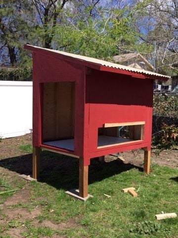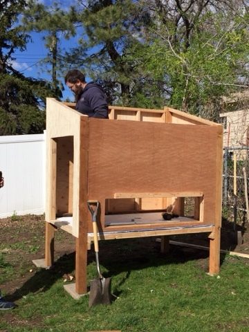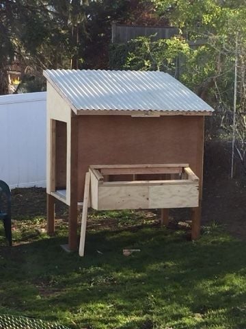The roof is attached at the four corners with lag bolts. I am also building here the detachable nesting box.