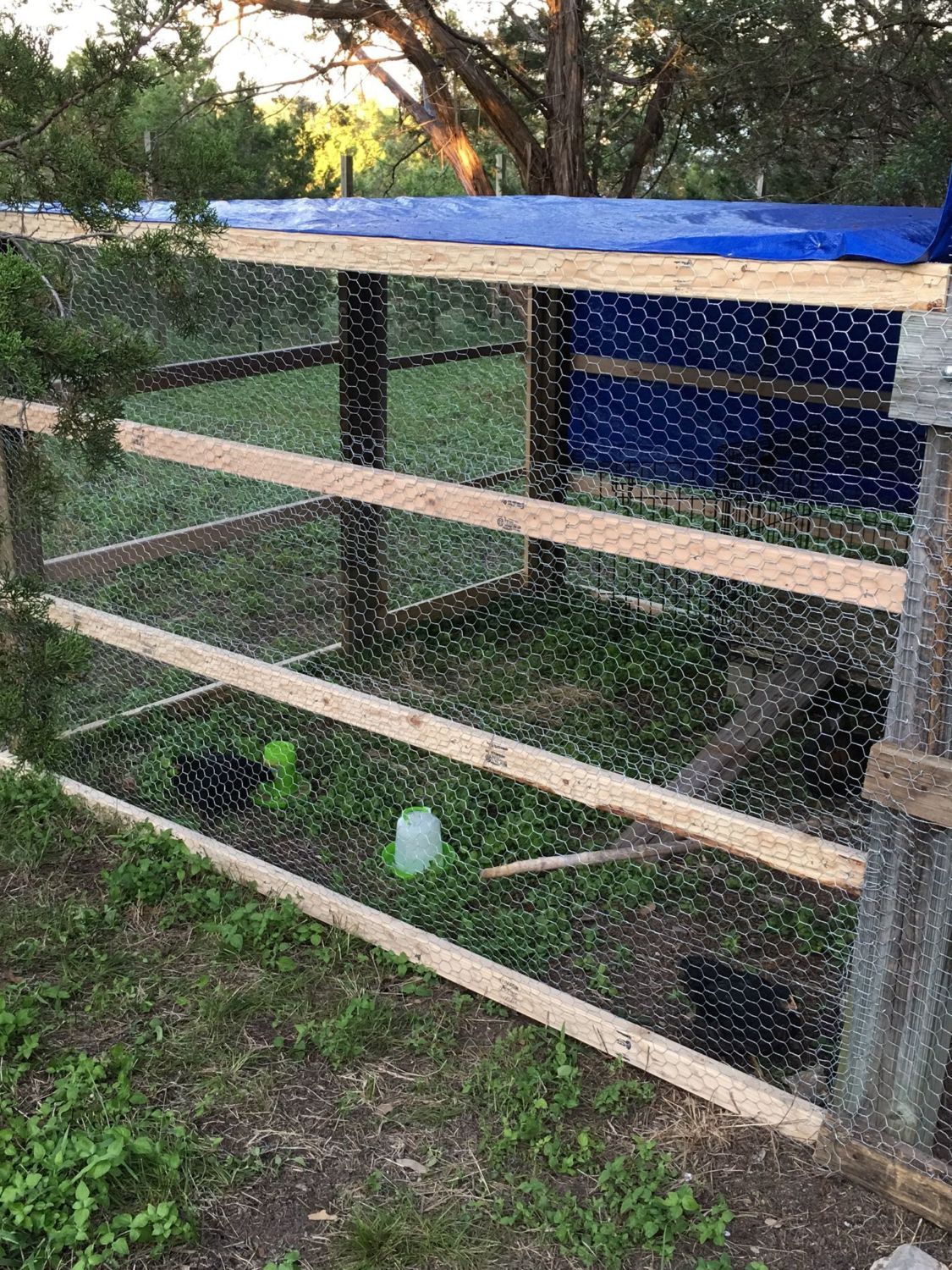 I'm not sure what region you're in or what your weather is like. Do the quails get any protection from wind? I noticed the chicken nestboxes are protected but the quail cage I assume is the one on the ground - seems a bit exposed to the elements or gets wet from rain? It's nice that you supervise free-range for the chickens since dogs don't mean to but get excited chasing/playing with chickens. Our friends had a Jack Russell Terrier that raided their coop and killed 3 of their 5 hens - it was a sweet dog but highly excited around the hens - they only had chicken poultry wire fence for their run and the dog broke it.My coop is nothing fancy like all the other coops on this thread but it is homemade though. We only have three chooks at the moment but i am hoping to expand my flock soon. They get let out a couple of times a day as i have a dog and they can't be let out without supervision. (That little coop inside is where i keep my King Quails)