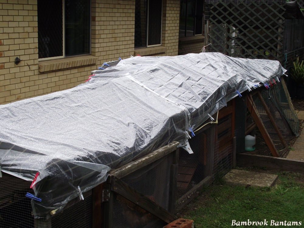 After years of ‘do I put the covers on the run’ and with our tropical climate, weighing up whether trying to keep them dry during a tropical storm is going to make it too hot in the run etc, today was the first real test for the new coop and covered run. Yeah, I know, ho hum for all of you who have covered runs, but I am chuffed to see all the effort was worth it with the water running off the roof and dry chickens underneath …
