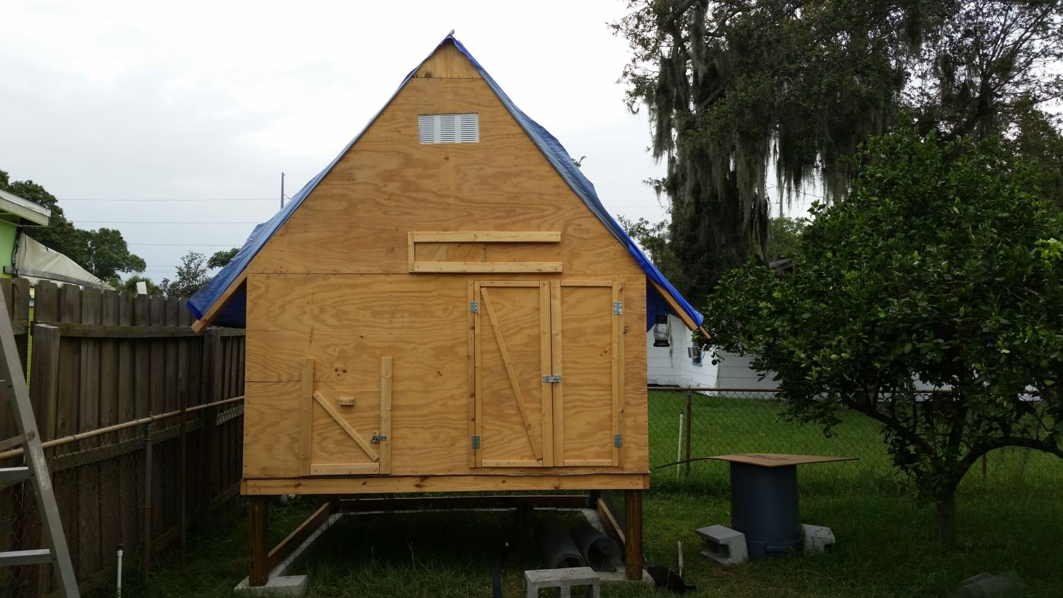 Still have roof, trim, more perches, paint and run. But it is coming along nicely. Rain is holding up progress at the moment.