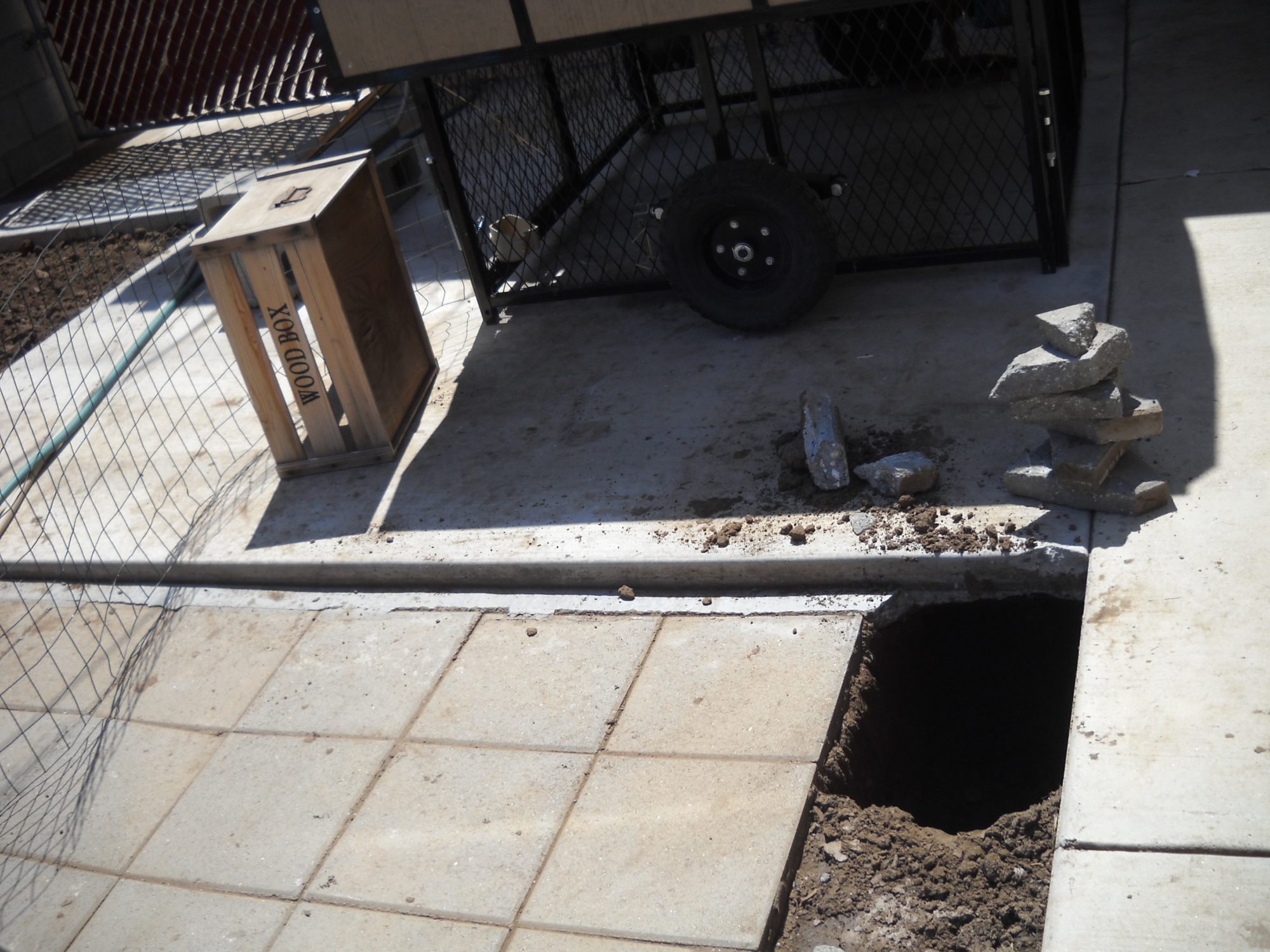 COOP PATIO BEFORE POSTS WERE DUG OUT.