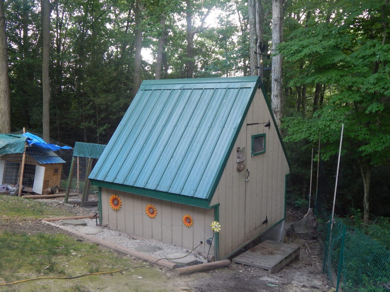 Looking great Mike!!I now have all the boards installed the bats will come later I need to get this hen house ready for the girls they have out grown their temp shelter. I should have it ready for them in the next week they are now around 14 weeks old. I let them free range all day but their temp dog house enclosure is getting small for the 18 of them 2 roosters and 16 hens. Here is a shot showing the siding installed (it still needs trim and bat boards installed). I will add a picture google drive is not synced to my phone. MikeI am going to start the inside tomorrow evening I just bought 7 sheets of reject siding for $10 a sheet to line the inside and I am going to pick up some linoleum for the floor some latex paint and they will have a hen house. Man this has taken much longer than I planned. I will go back after the hen house and run is complete and do the finish work on the outside.