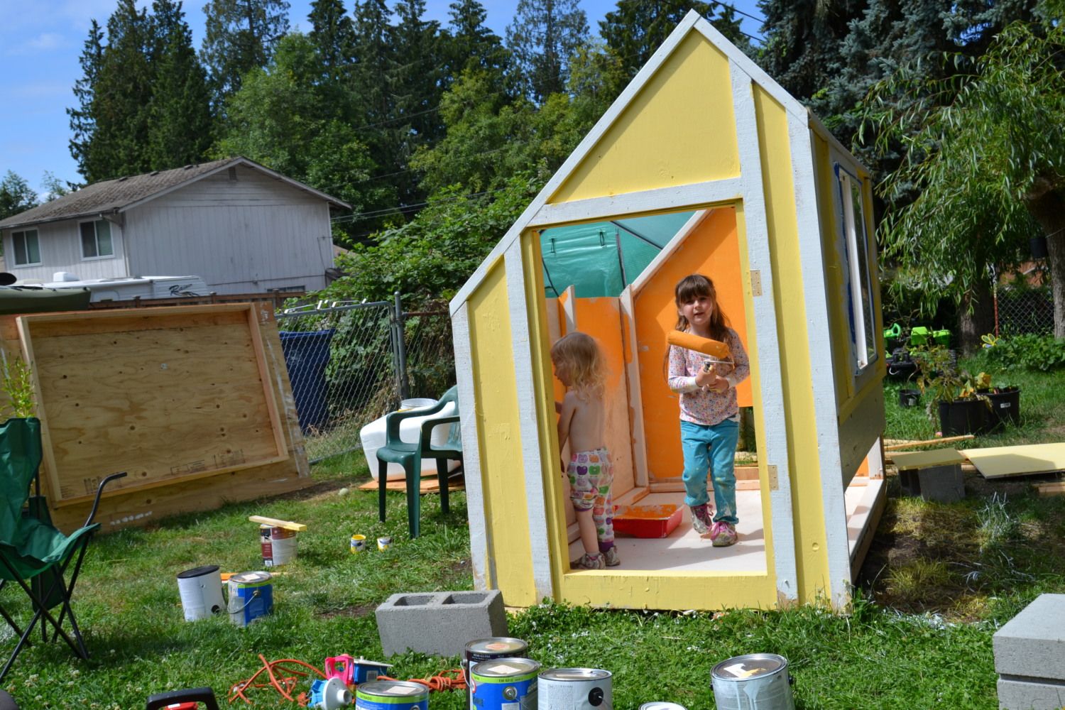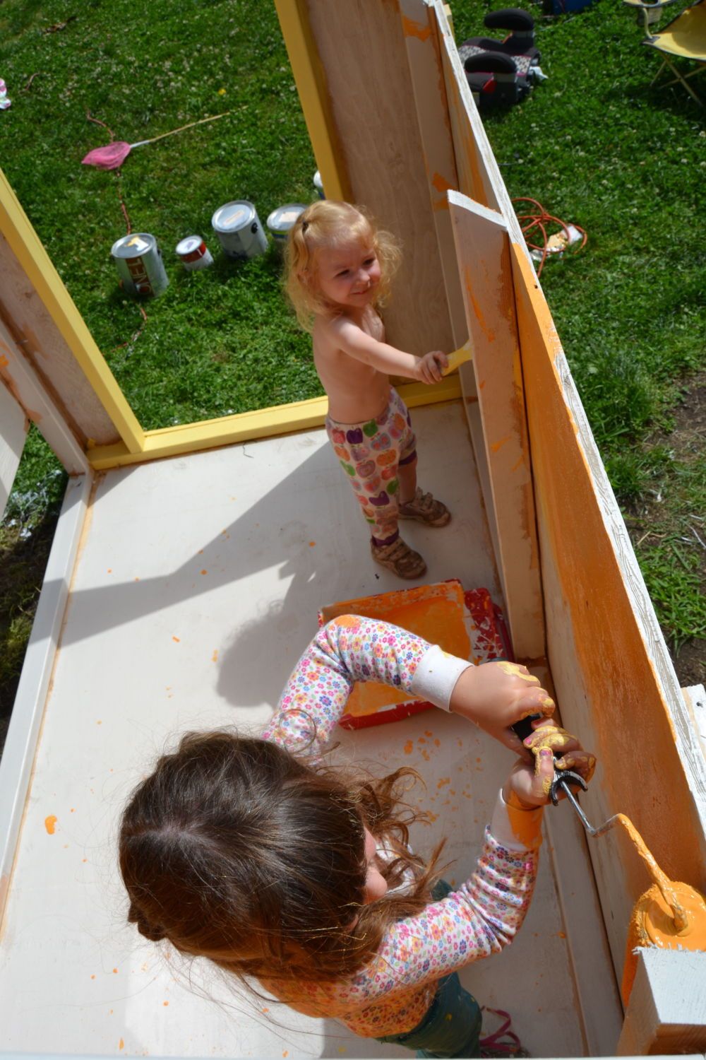 My girls fun messy work. Got all the paint and shingles for free :)