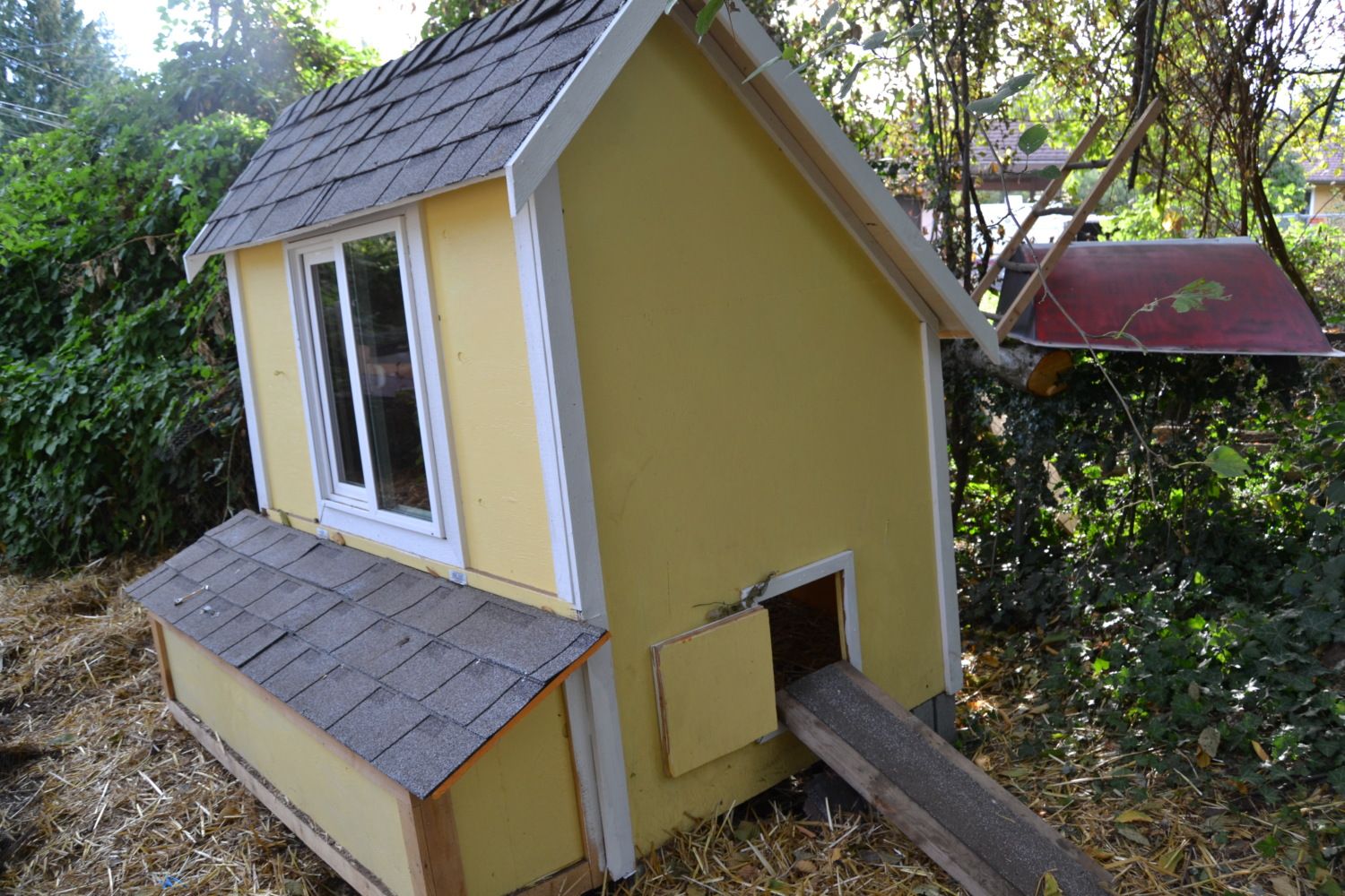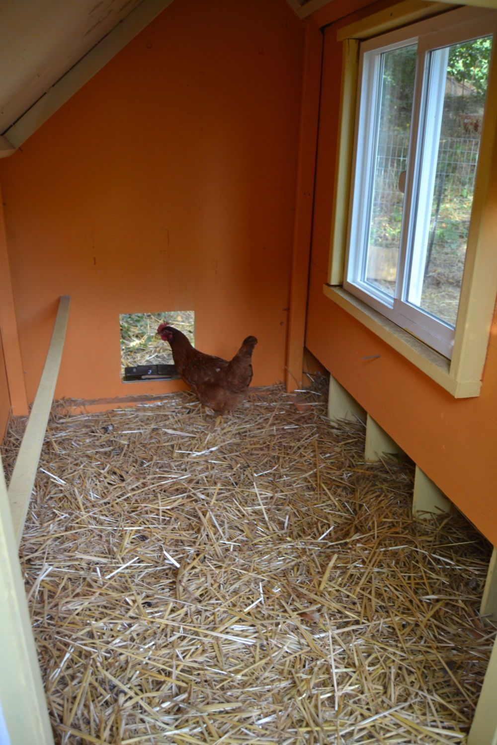 This ramp is actually in the way since both my hens jump to the 2nd level which is only 2' above the ground.. Maybe one day it will have some use if I have chicks